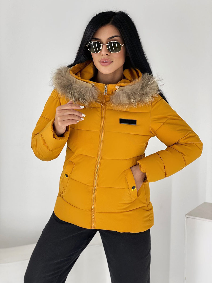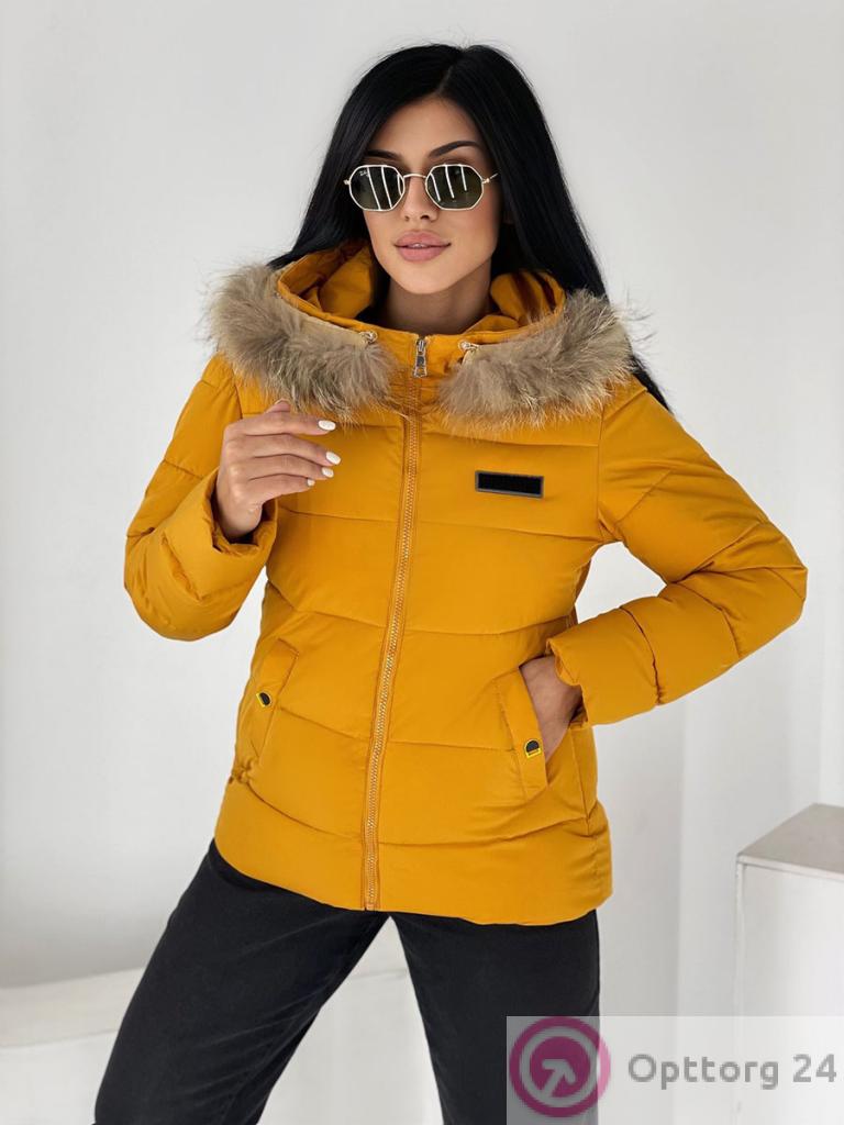 Куртка зимняя женская с натуральным мехом цвет горчичный оптом