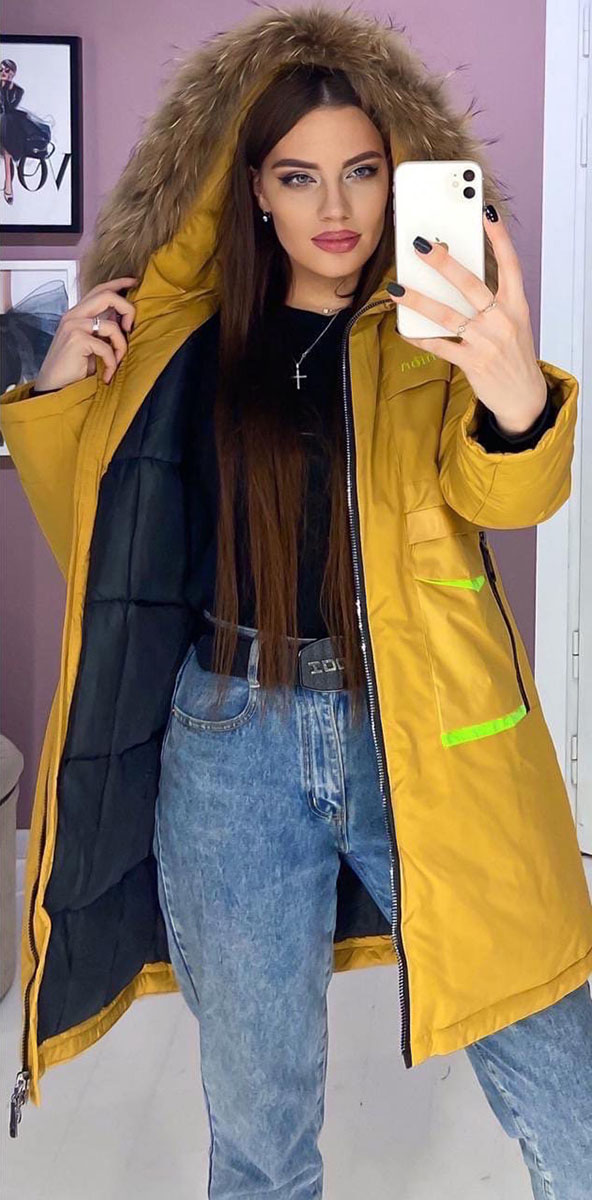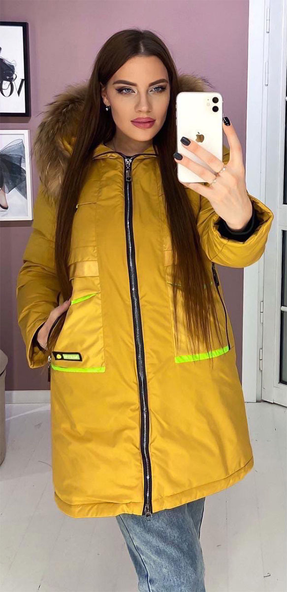 Описание: Куртка зимняя женская песочного цвета. Высокий воротник. Есть капюшон декорирован натуральным мехом. Застежка на молнии, есть два больших накладных кармана.