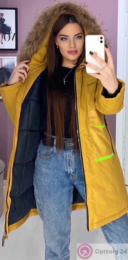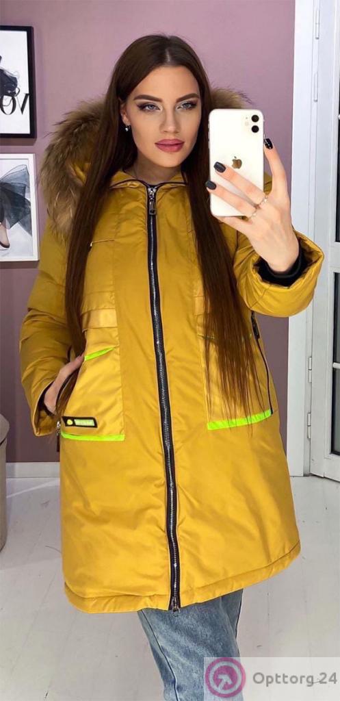 Куртка зимняя женская с натуральным мехом цвет песочный оптом