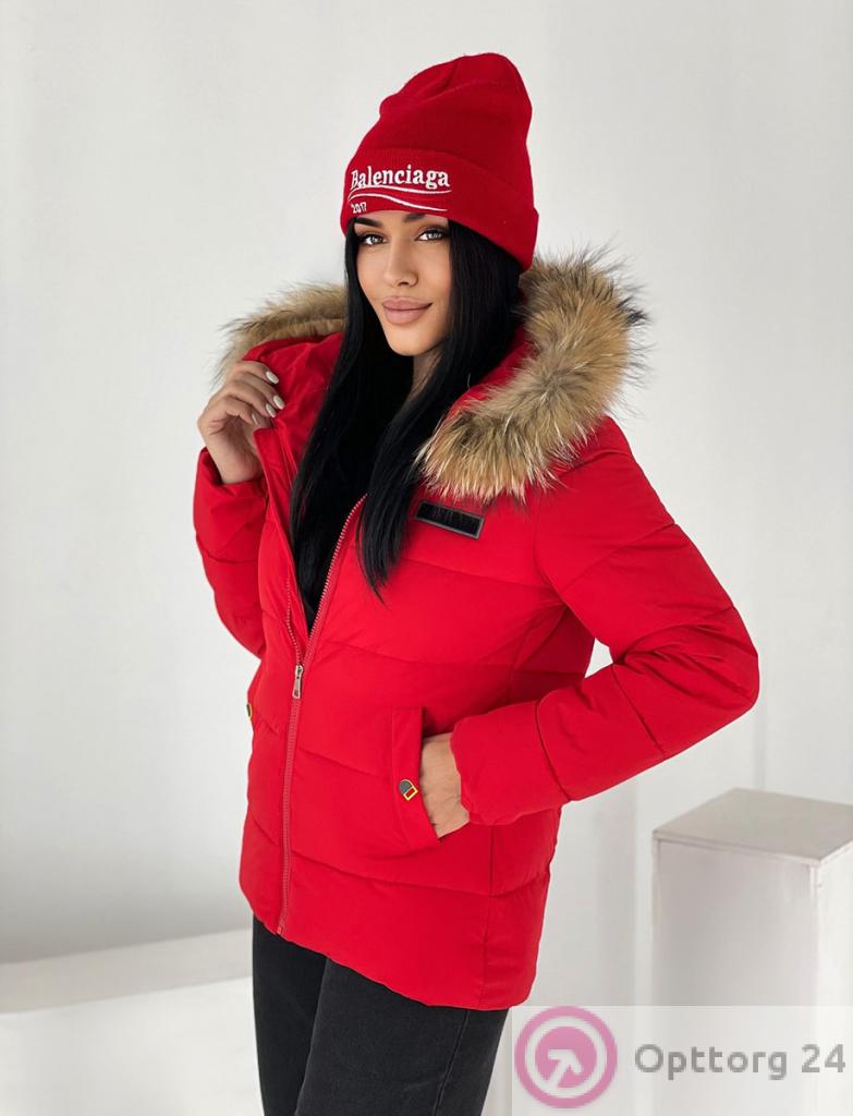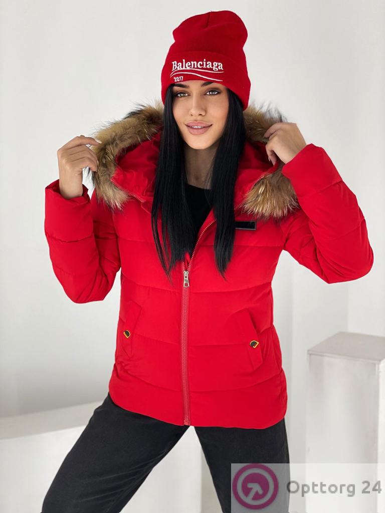 Куртка зимняя женская с натуральным мехом цвет ярко-красный оптом