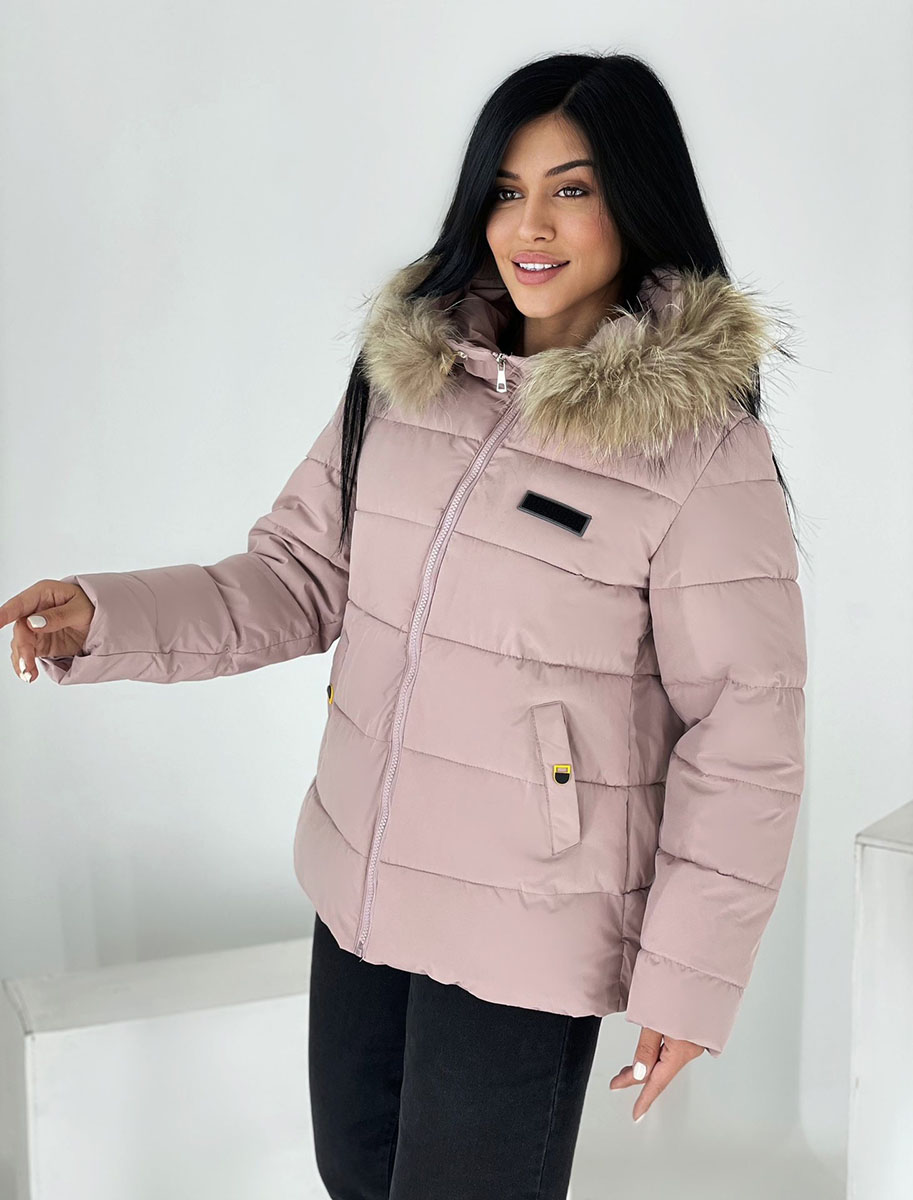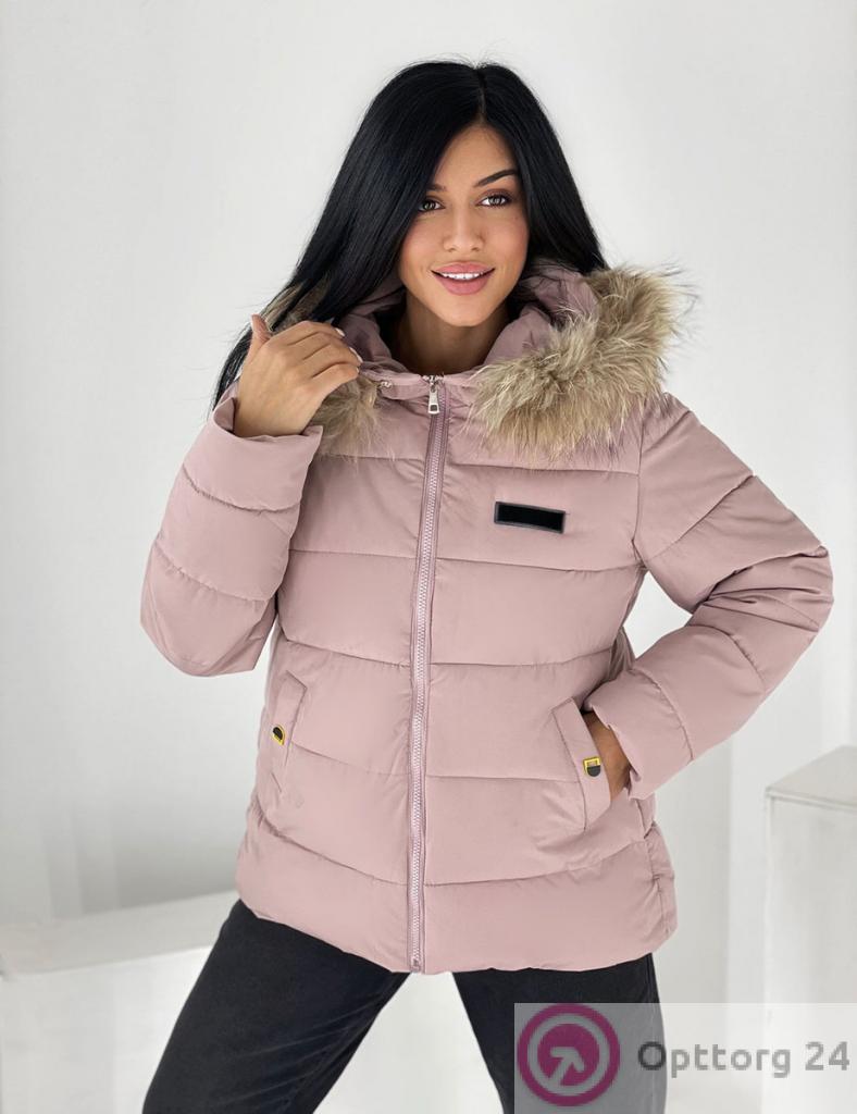 Описание: Куртка зимняя женская цвет пепельной розы. Высокий воротник. Есть капюшон декорирован натуральным мехом. Застежка на молнии, есть два кармана.