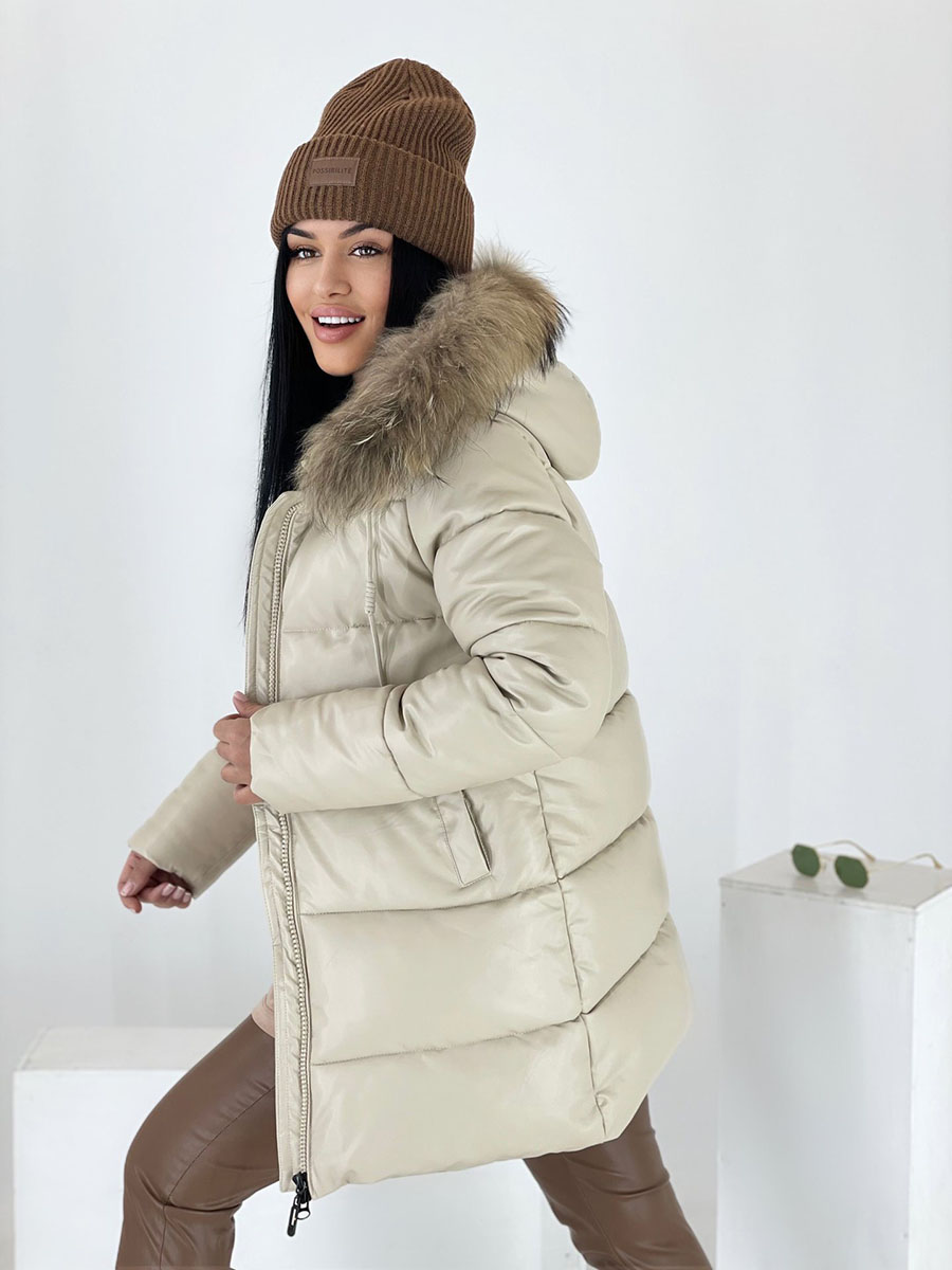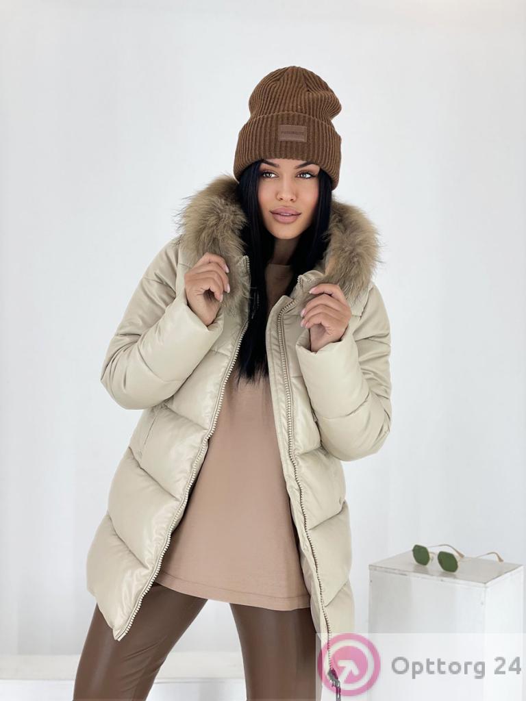 Куртка зимняя женская с натуральным мехом и двухсторонней молнией оптом
