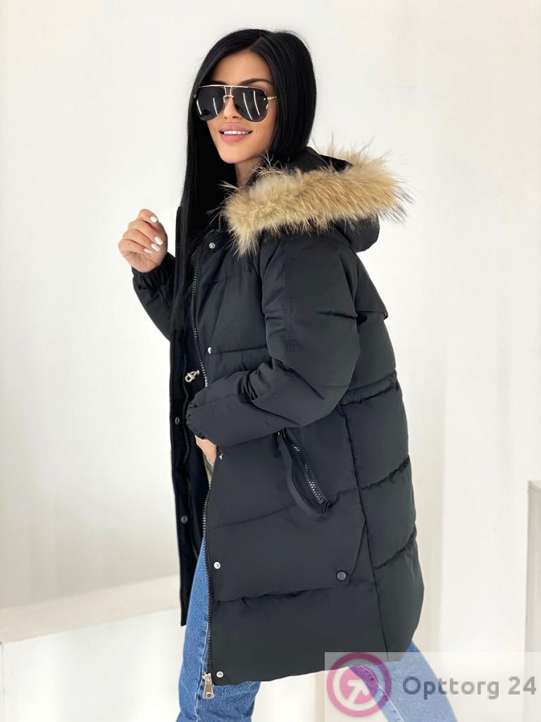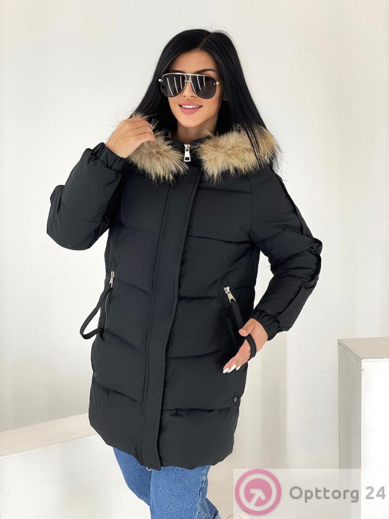 Куртка зимняя женская с натуральным мехом и капюшоном оптом