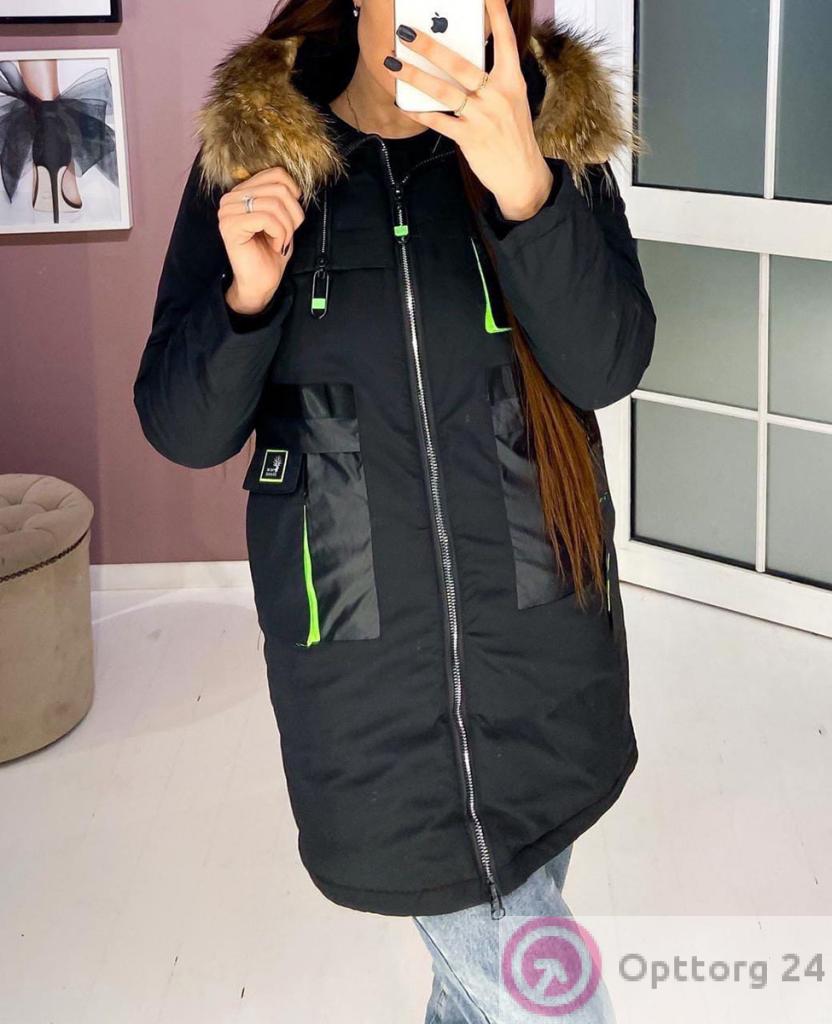 Куртка зимняя женская с натуральным мехом и вставками оптом