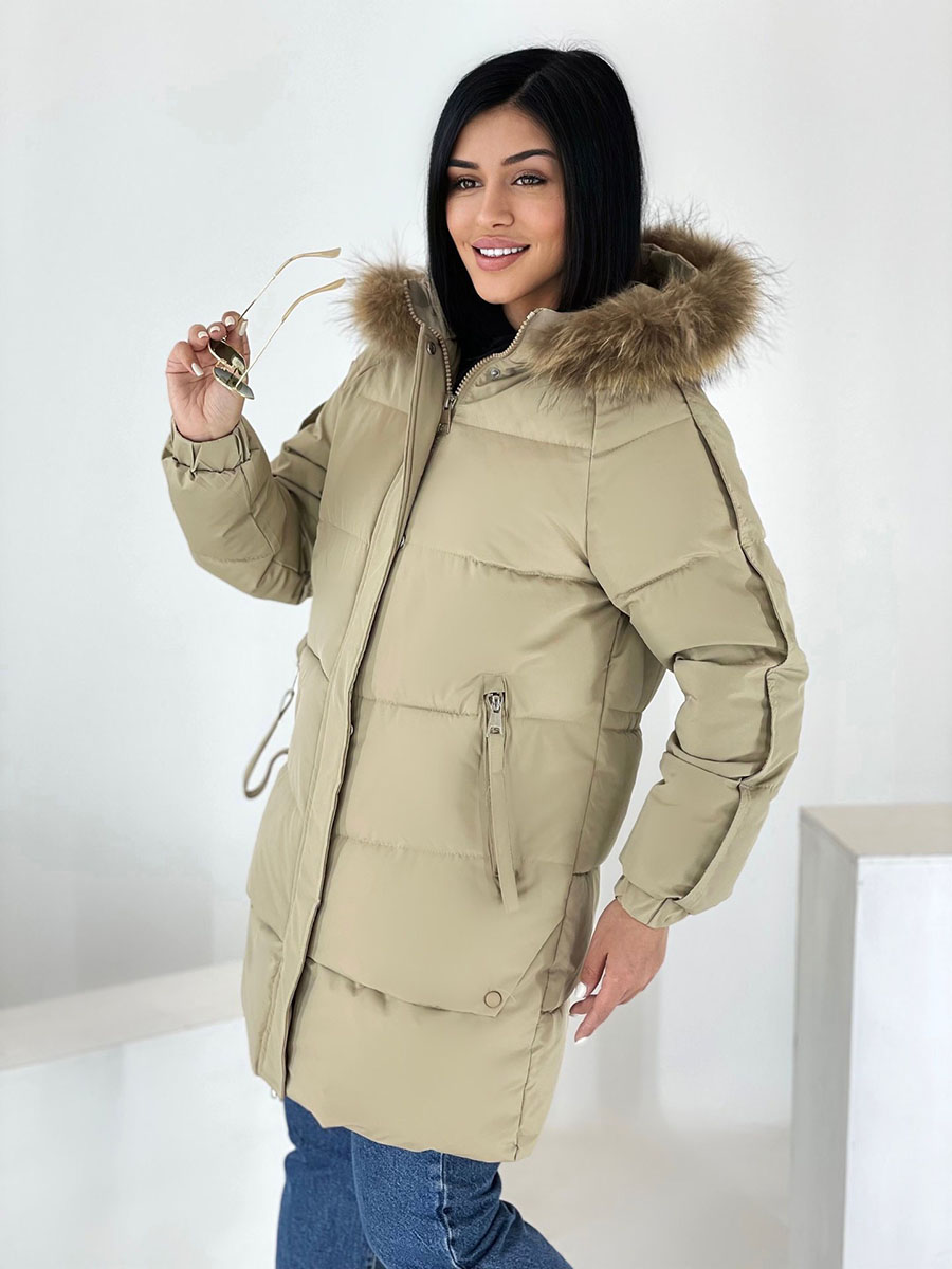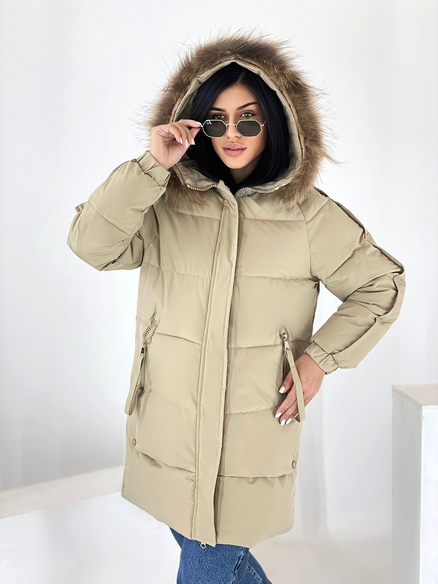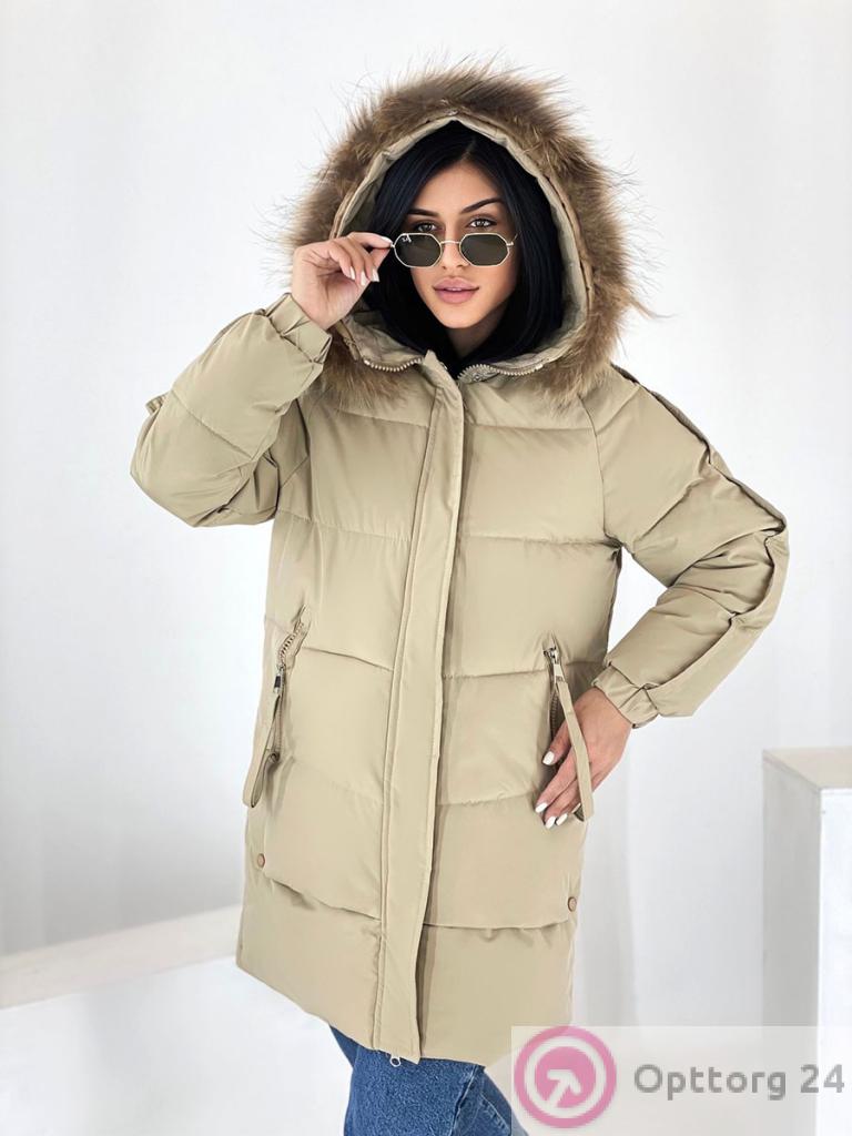 Куртка зимняя женская с натуральным мехом удлиненная оптом