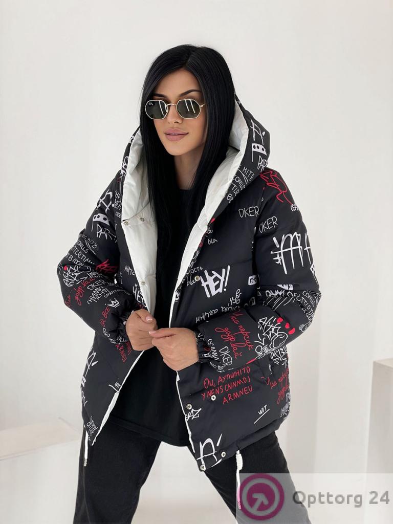 Куртка зимняя женская с принтом оптом