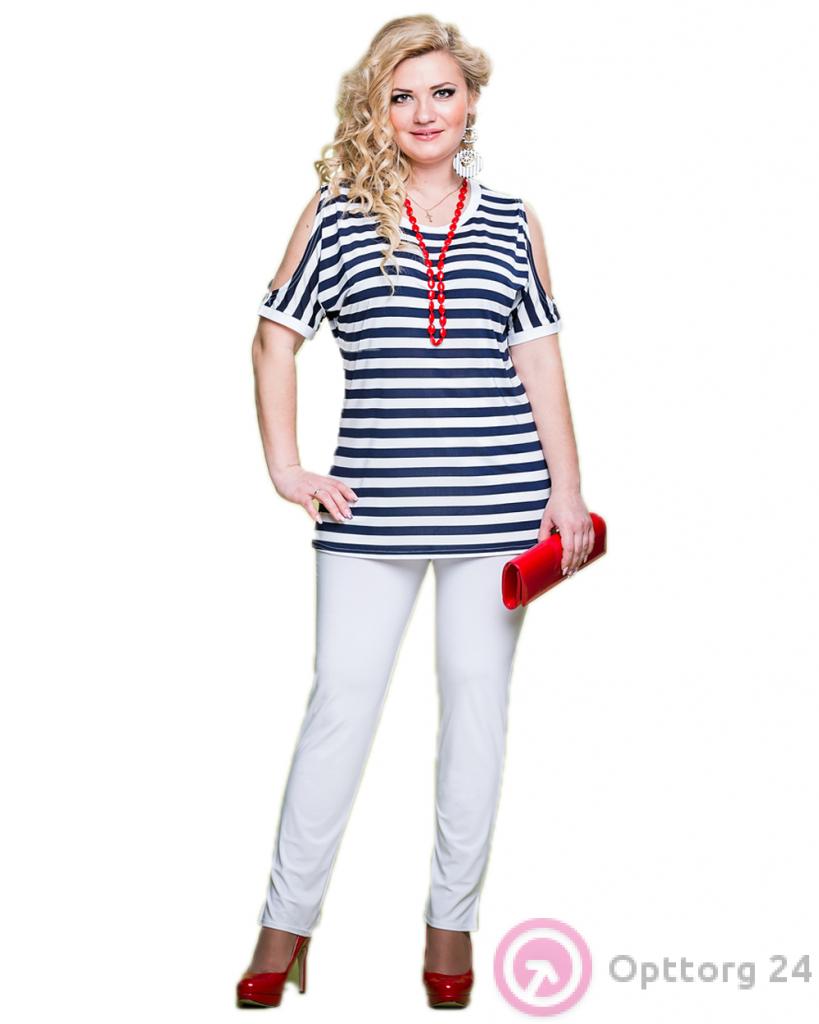 Свободная летняя блуза «матроска» будет выгодно сочетаться с узкими белыми брюками. Короткий рукав с вырезом позволит дышать Вашим ручкам и не будет сковывать движений.