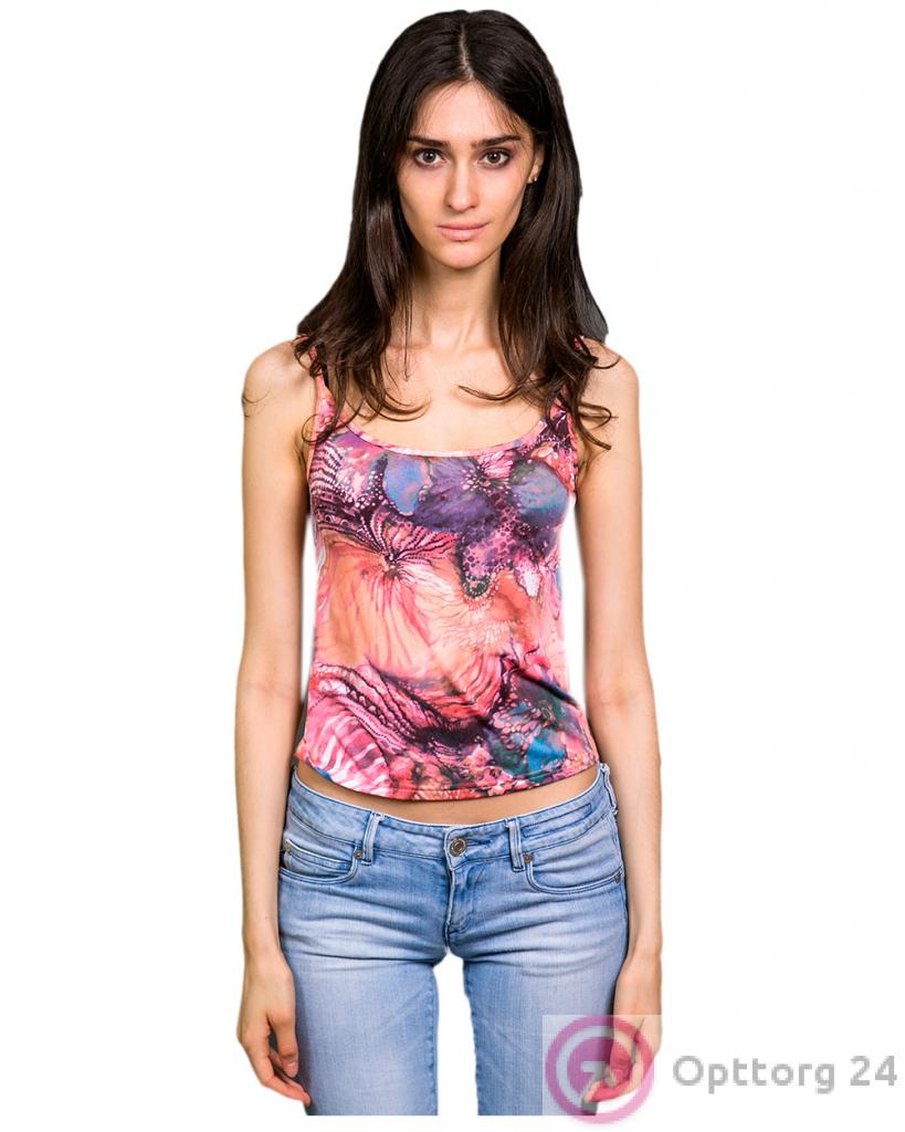 Женская укороченная майка цвета фуксии. Облегающий крой и узкие бретели.
