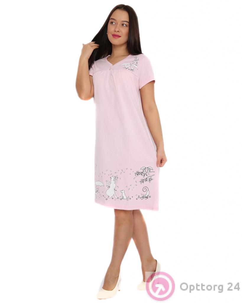 Ночная рубашка розовая с белым рисунком оптом