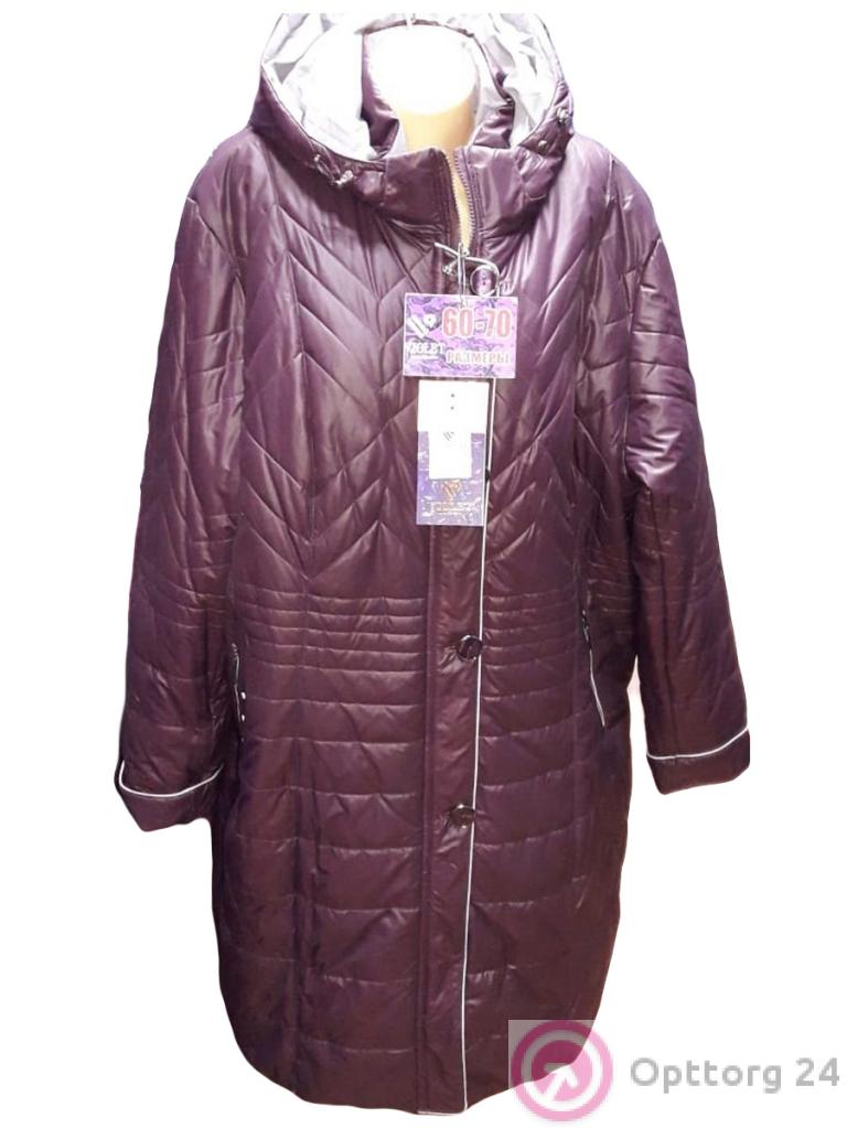 Зимнее стеганое пальто для женщин сливового цвета ниже колена с капюшоном и карманами. Приталенная модель.