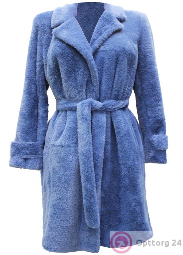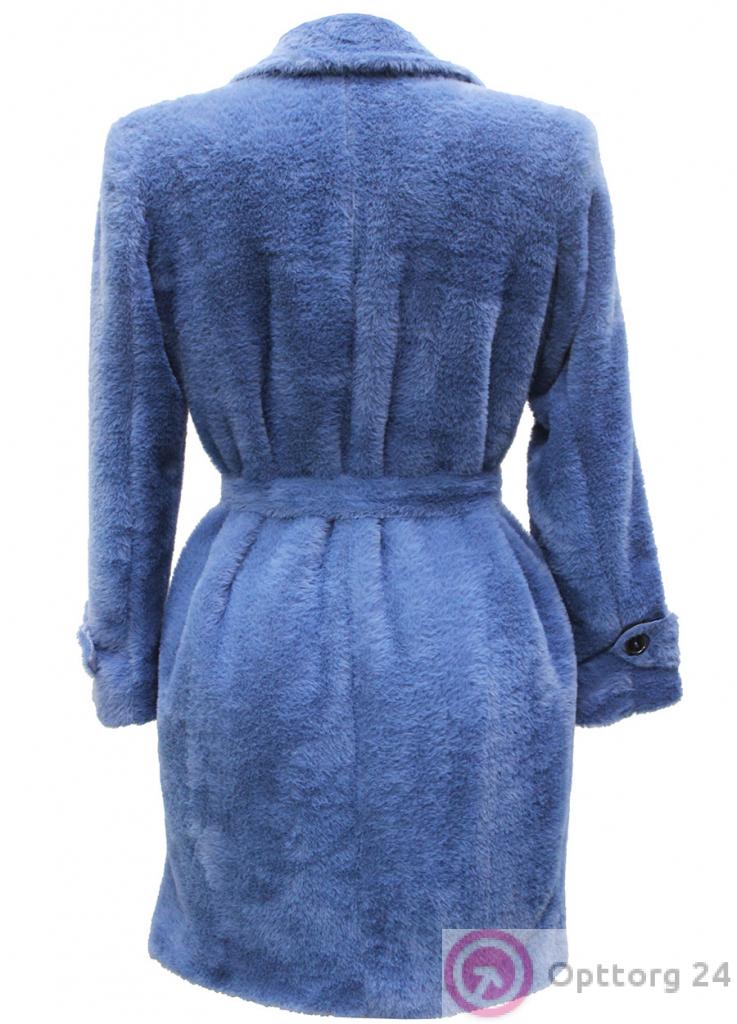 Пальто облегченное удлиненное голубое с поясом меховое оптом