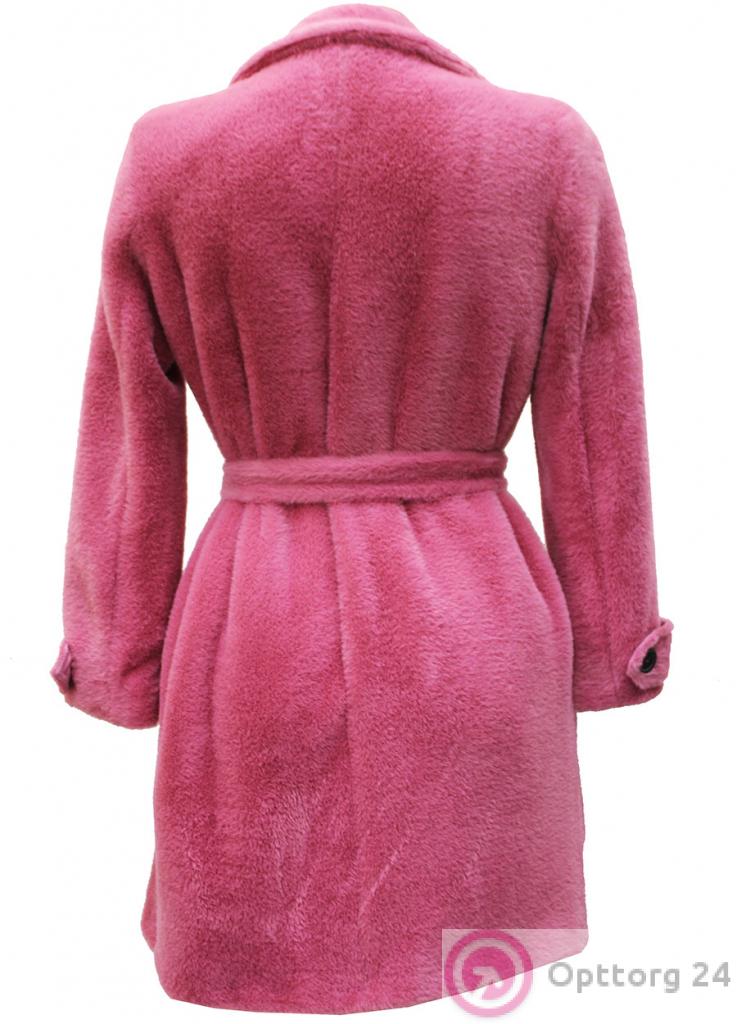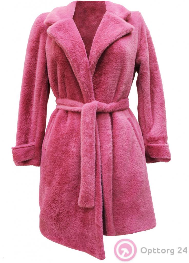Пальто облегченное удлиненное ярко-розовое с поясом меховое оптом