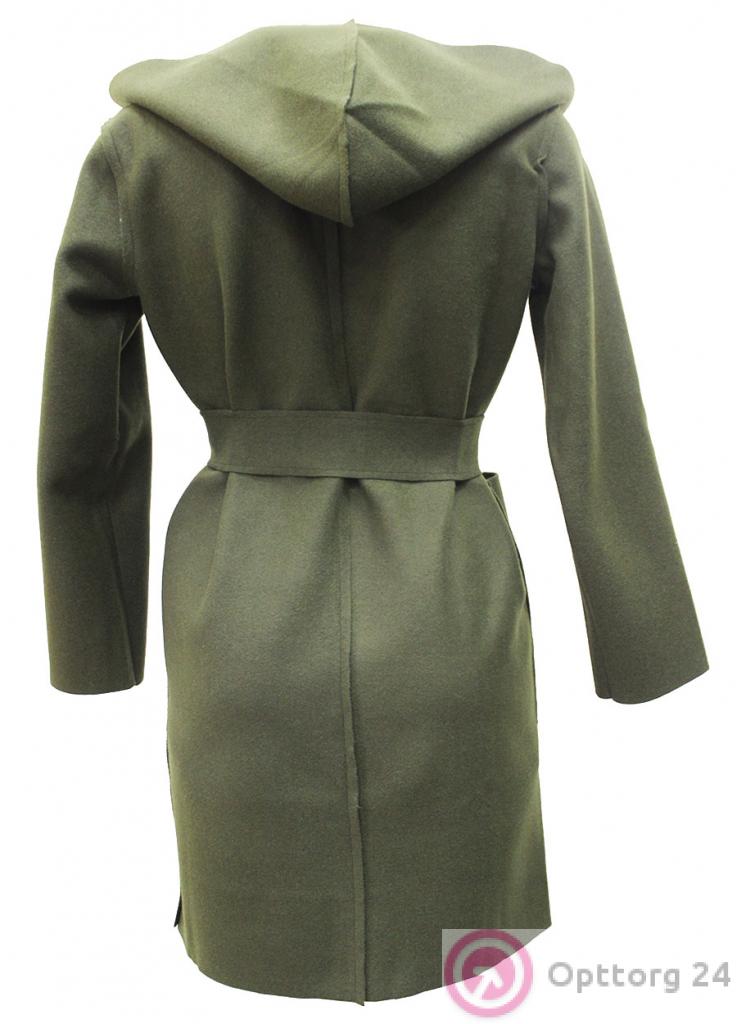 Пальто облегченное удлиненное зеленое с поясом оптом
