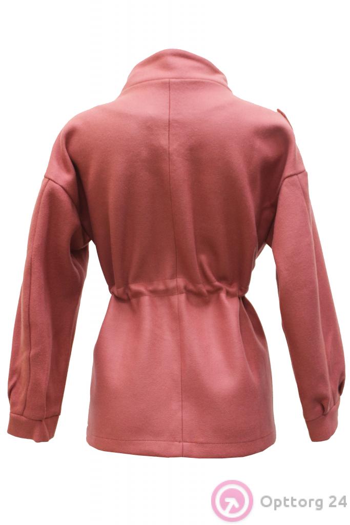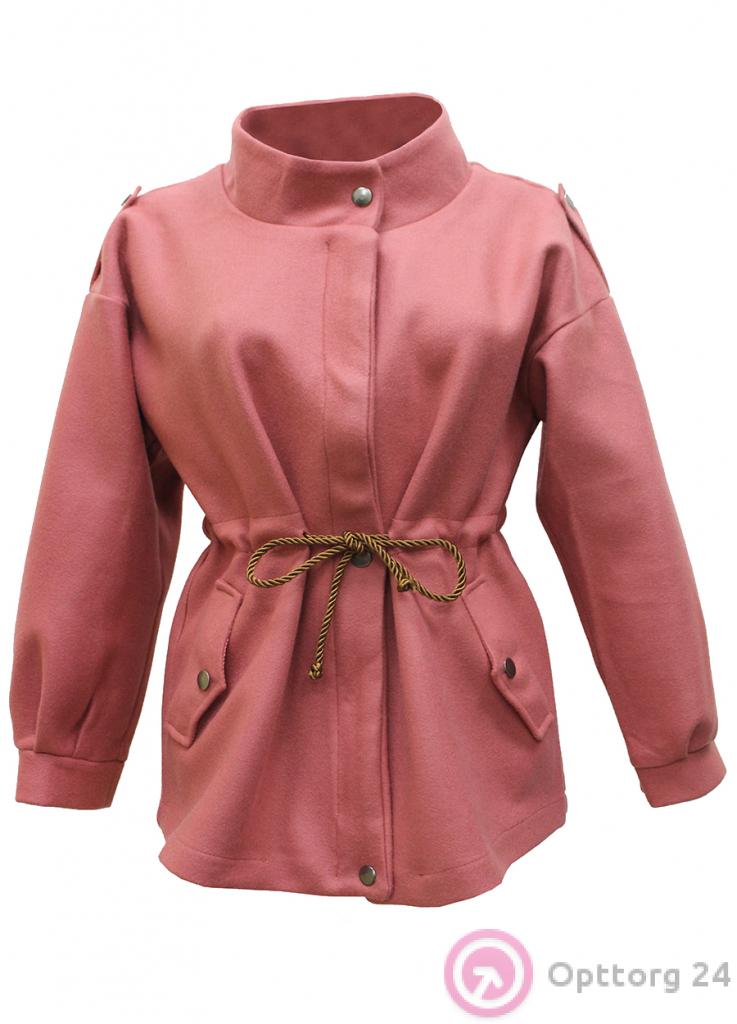 Пальто облегченное женское коралловое с плетеным поясом оптом