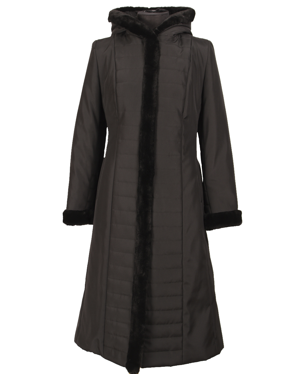 Женское пальто, приталенное с капюшоном. По длинне прошито полосками. Плотная теплая ткань не даст замёрзнуть в самый сильный ветер.