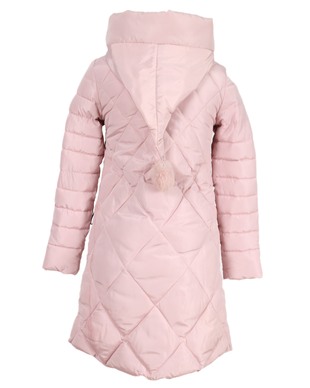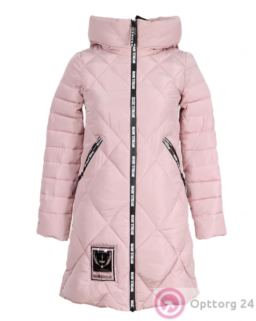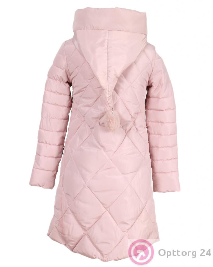Пальто-пуховик нежно-розового цвета с нашивкой снизу оптом