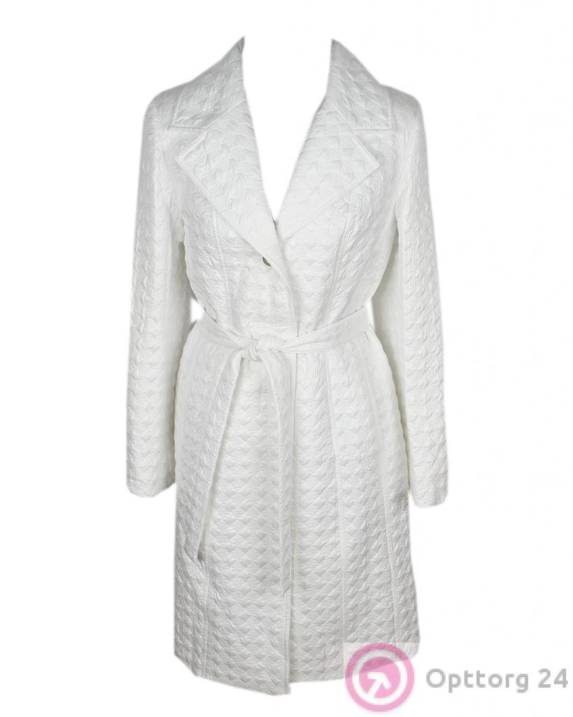 Пальто женское белое с рельефной драпировкой оптом