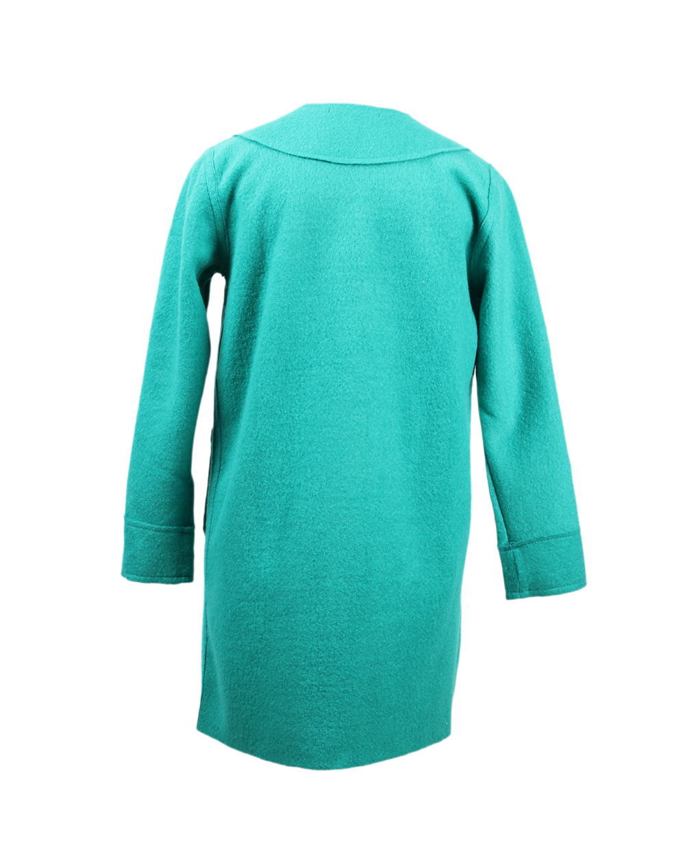 Стильное пальто яркого бирюзового цвета. Модель выполнена в минималистичном стиле и имееет прямой крой.