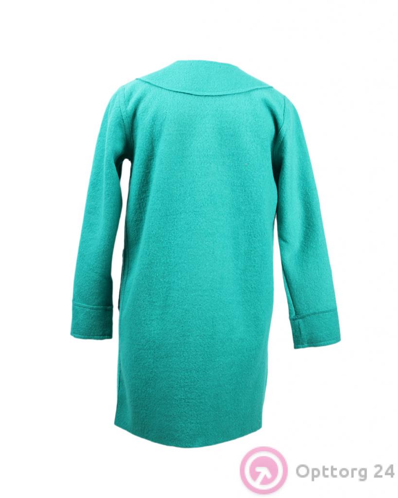 Пальто женское бирюзовое с драпировкой оптом