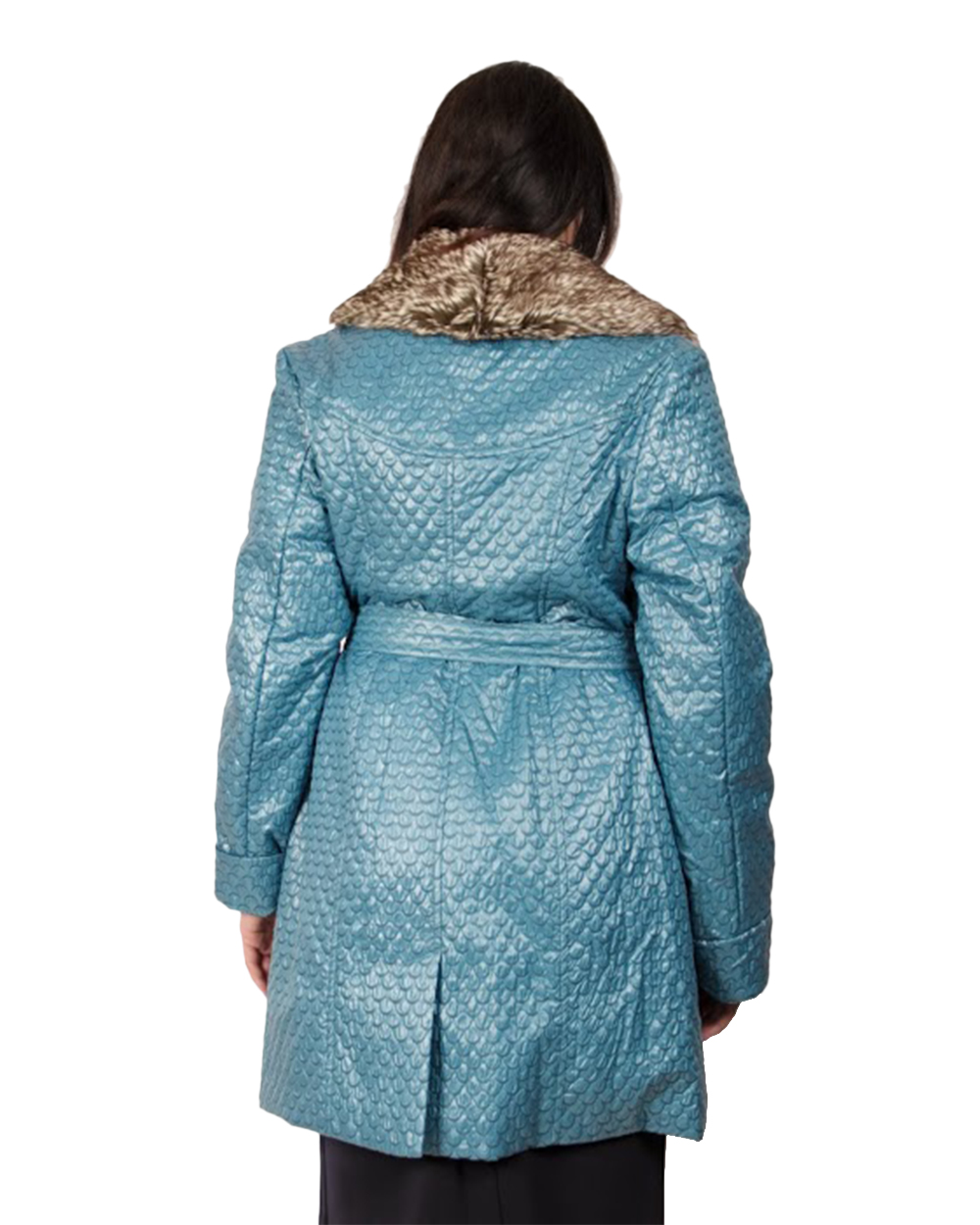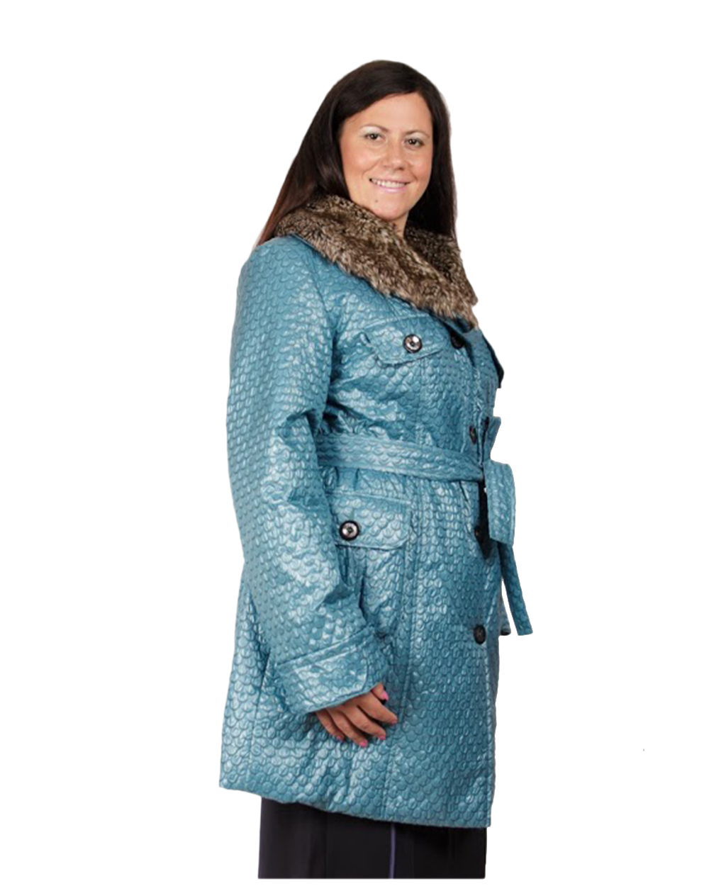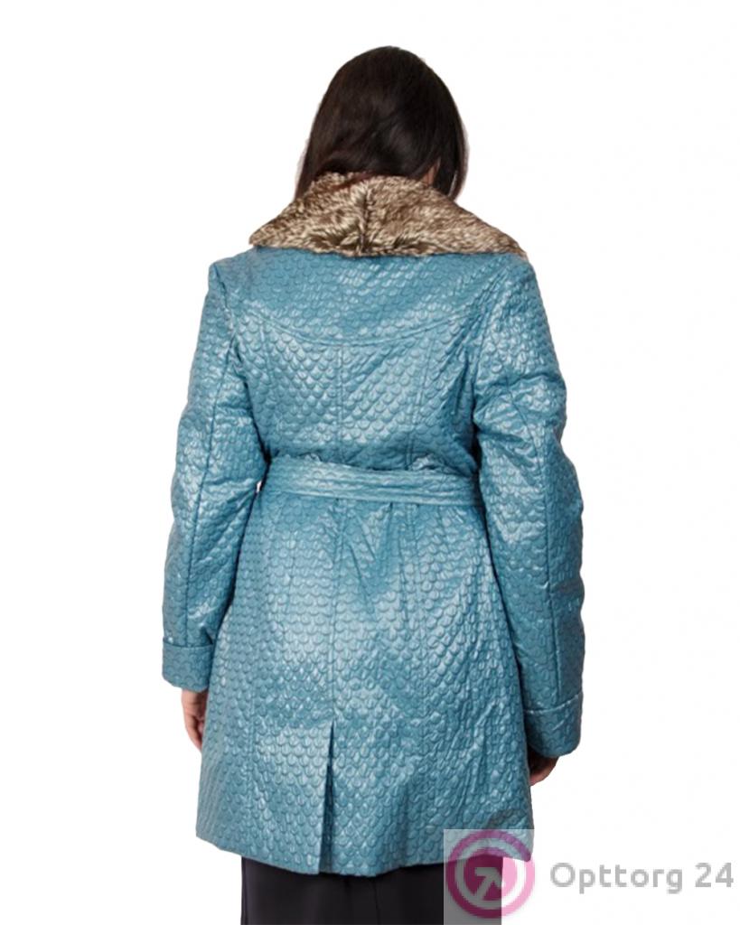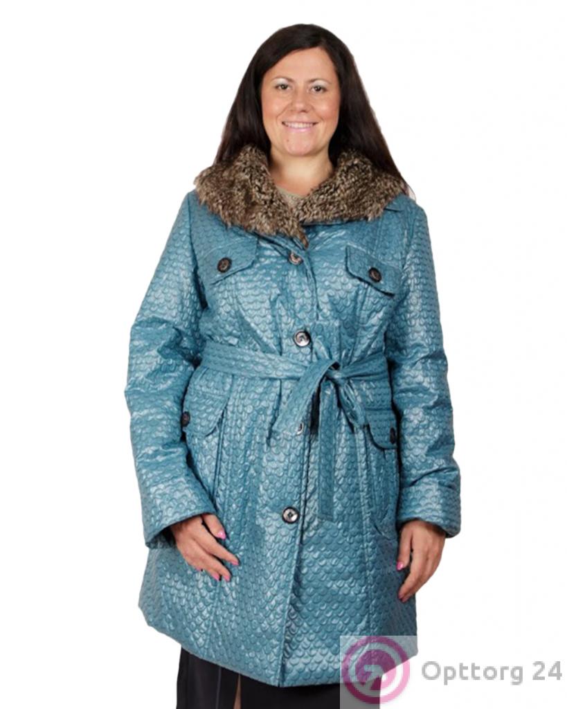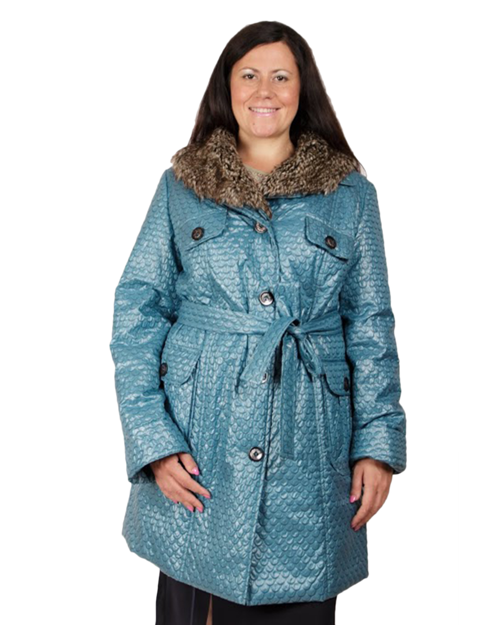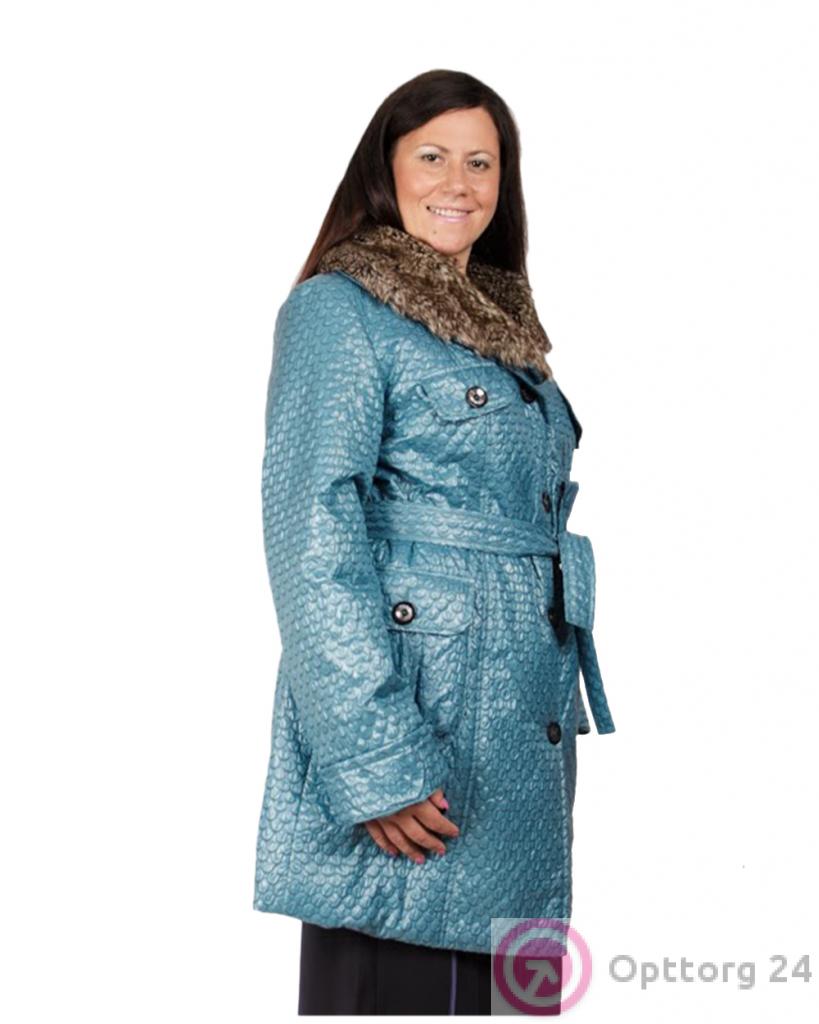 Женское пальто насыщенного голубого цвета. Модель застегивается на пуговицы, и дополнена боковыми карманами.