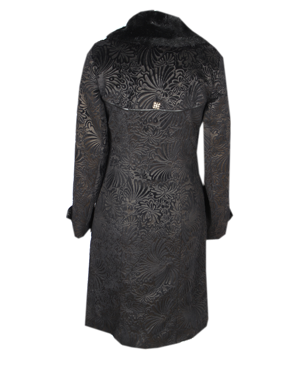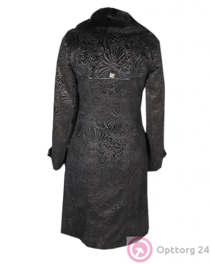 Красивое женское пальто с рельефным рисунком-драпировкой. Изделие выполнено из искуственного меха.