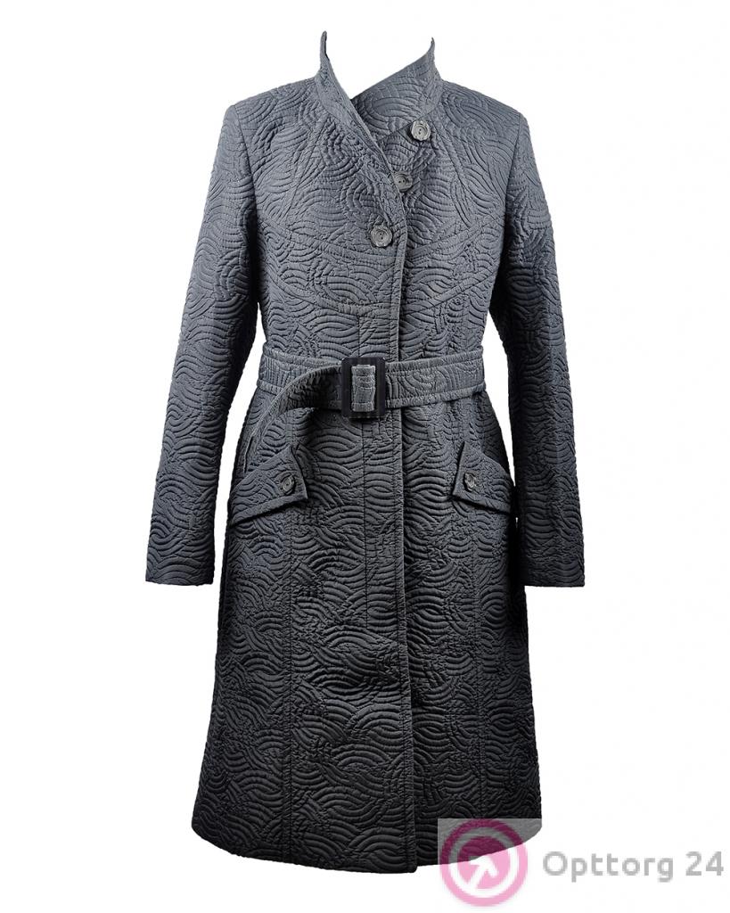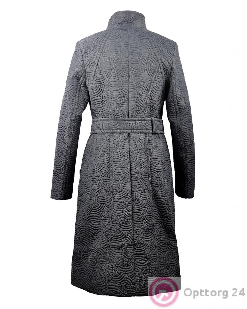 Пальто женское демисезонное дымчато-серое с узором на ткани оптом