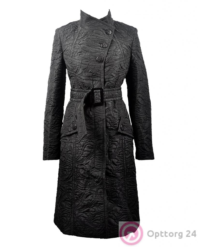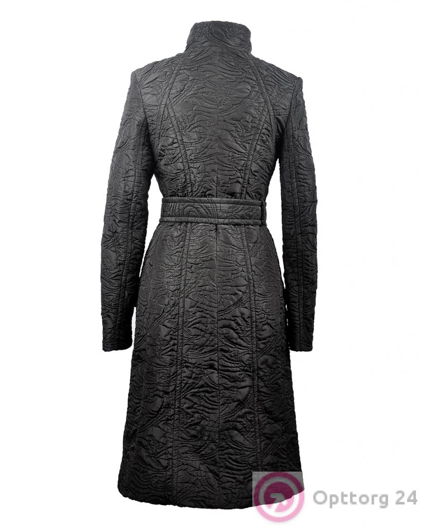Пальто женское демисезонное с косым воротом фактурное черное оптом