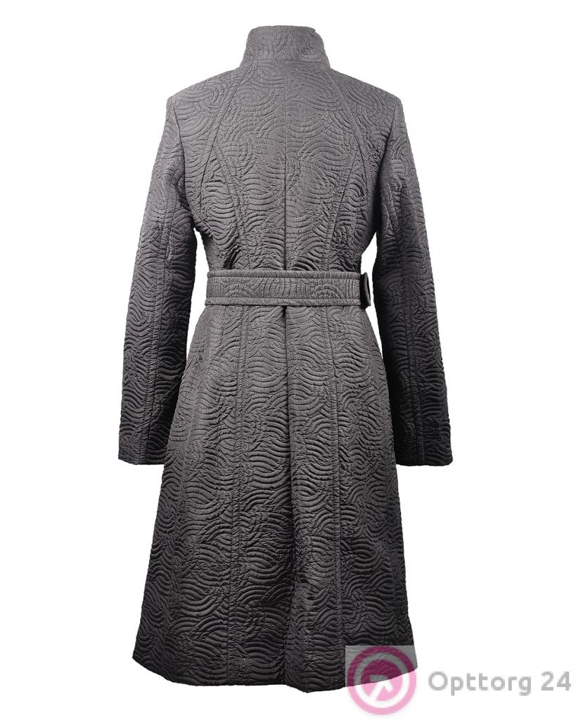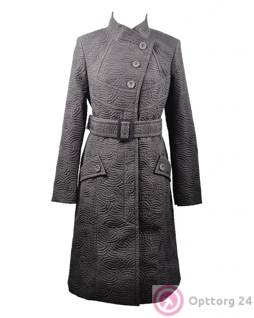 Пальто женское демисезонное с косым воротом серого цвета оптом