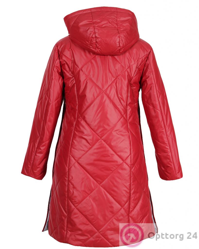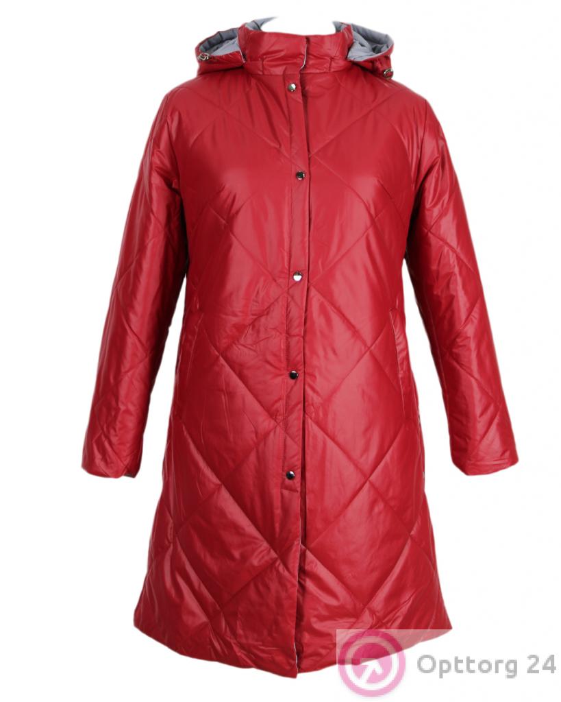Женское стеганное пальто бордового цвета. Модель имеет длину до колена. Капюшон отстегивается. Воротник-стойка.