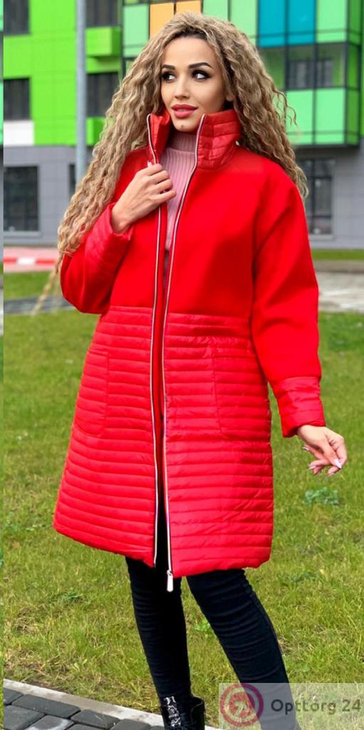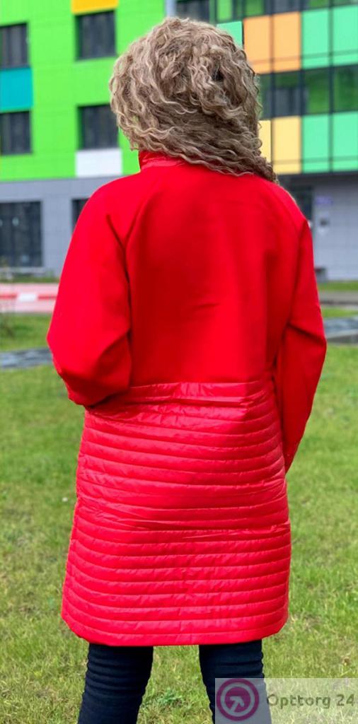 Пальто женское комбинированное на синтепоне красного цвета оптом