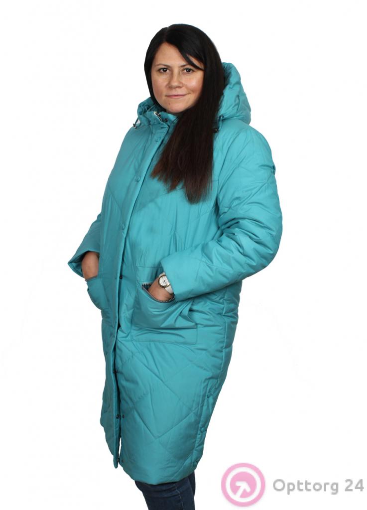 Стильное женское пальто приятного бирюзового цвета. Имеет удобные карманы, капюшон и застежку-молнию с защитной планкой