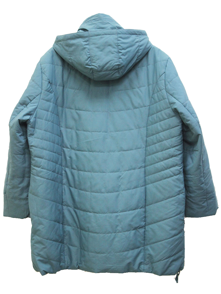 описание: пальто женское на синтепоне бирюзового цвета с двумя карманами. Есть капюшон на завязках.