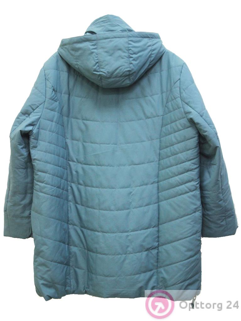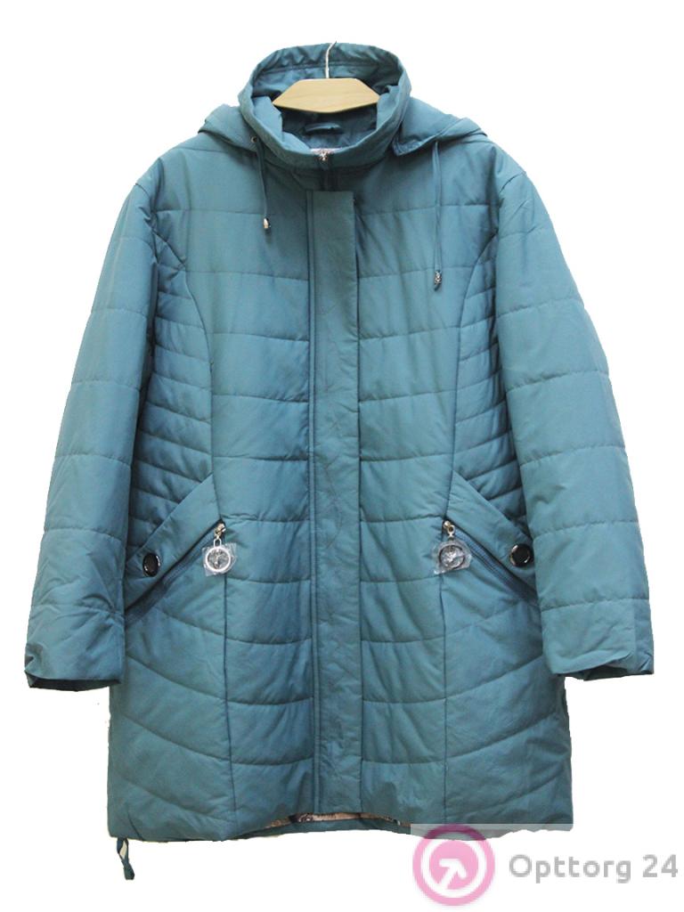 Пальто женское на синтепоне бирюзового цвета с двумя карманами оптом