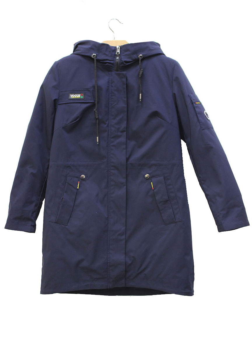 описание: пальто женское на синтепоне темно-синего цвета удлиненное . Есть капюшон и карманы.