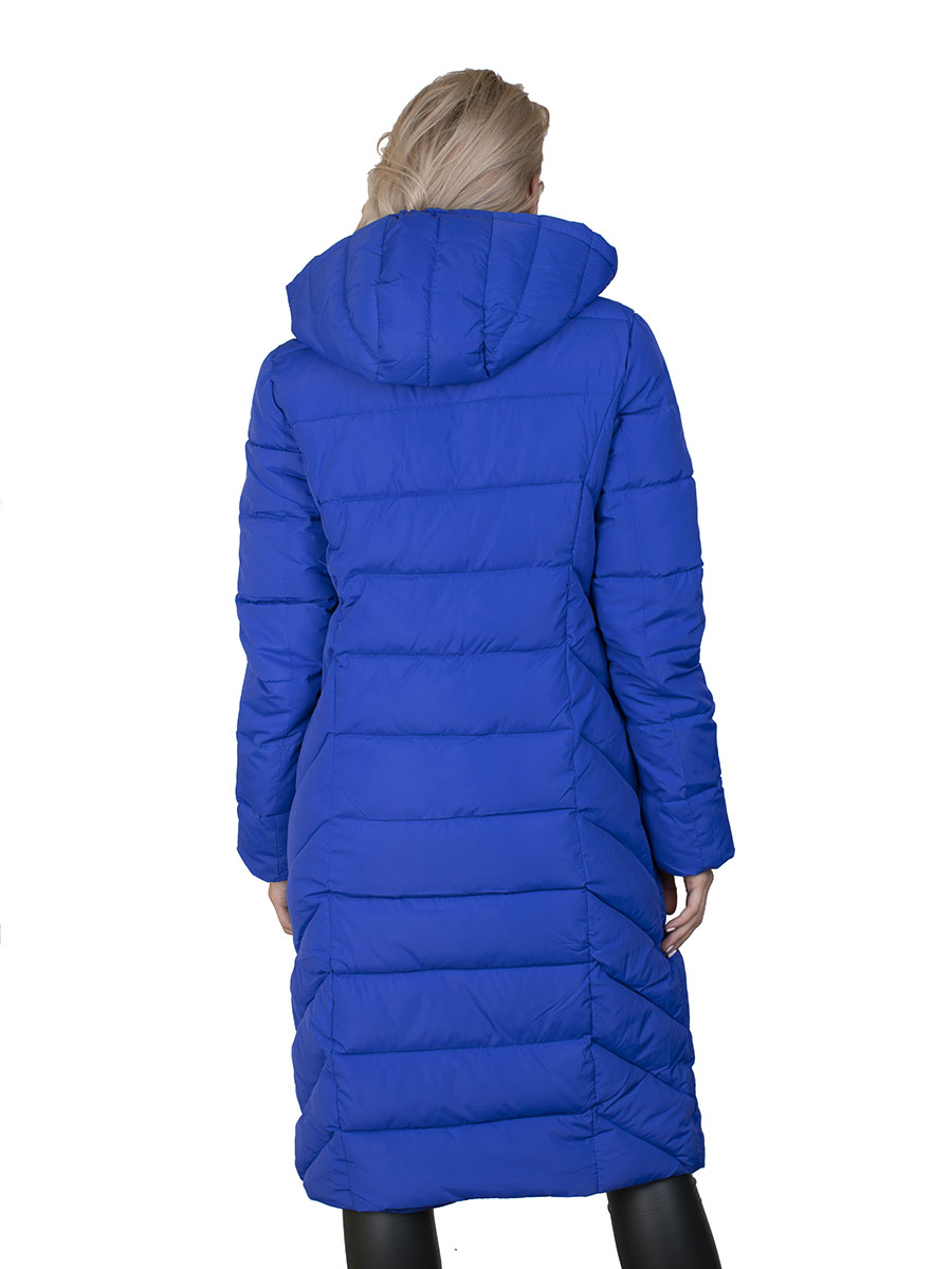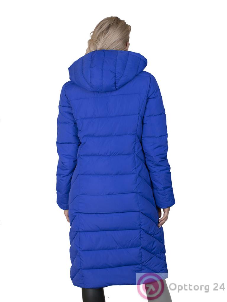 Описание: Пальто женское зимнее на синтепоне стеганное. Ярко-синего цвета. Застежка на молнии, есть капюшон и два кармана.