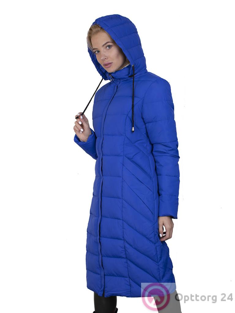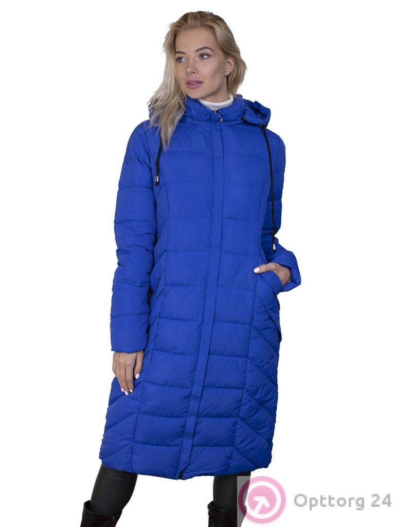 Пальто женское на синтепоне ярко-синего цвета оптом