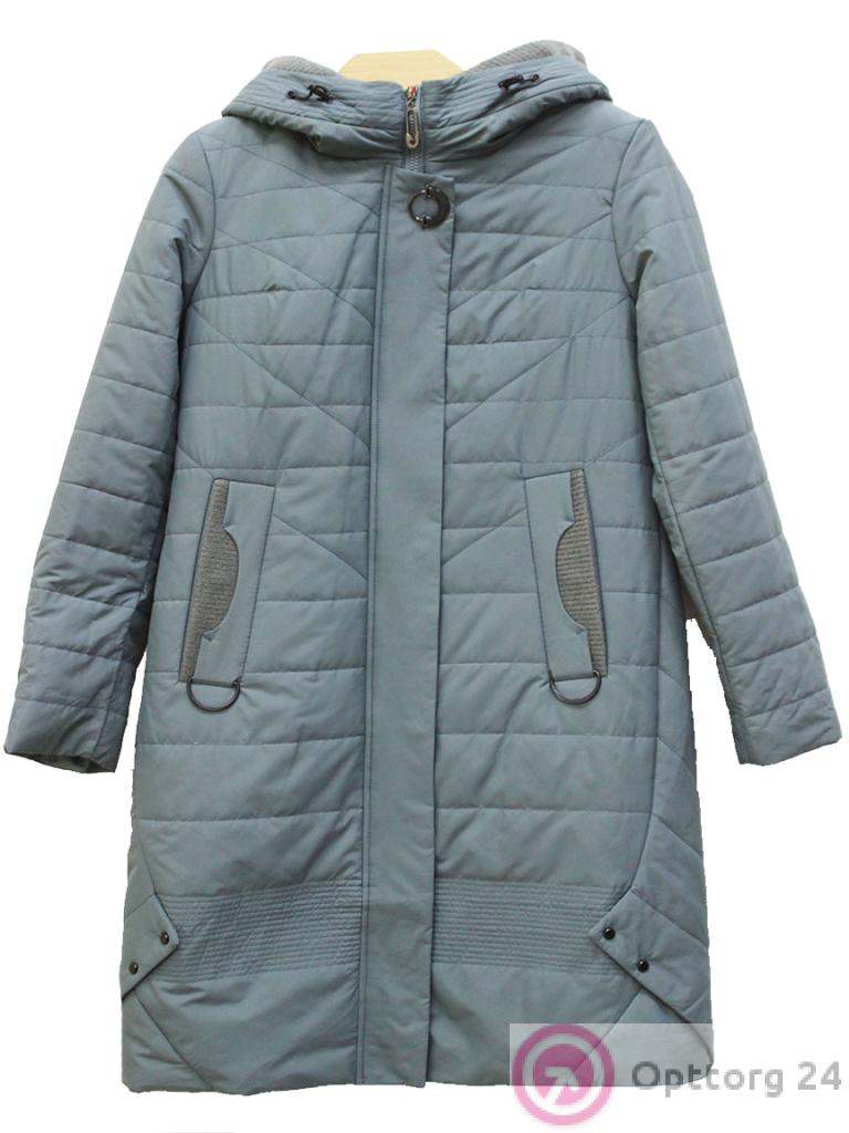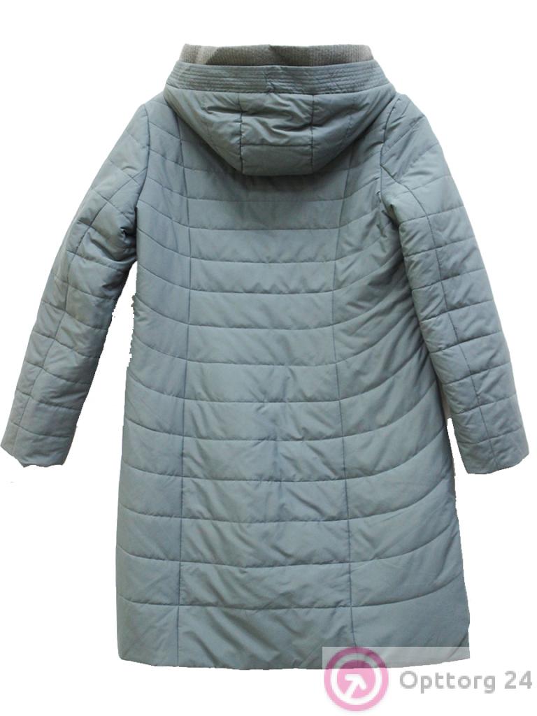 Пальто женское на синтепоне зеленое пастельное с карманами оптом