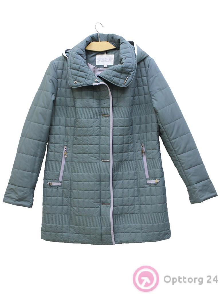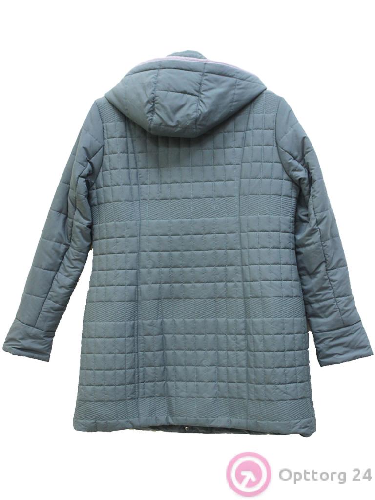 Пальто женское на синтепоне зеленое с лавандовыми вставками оптом