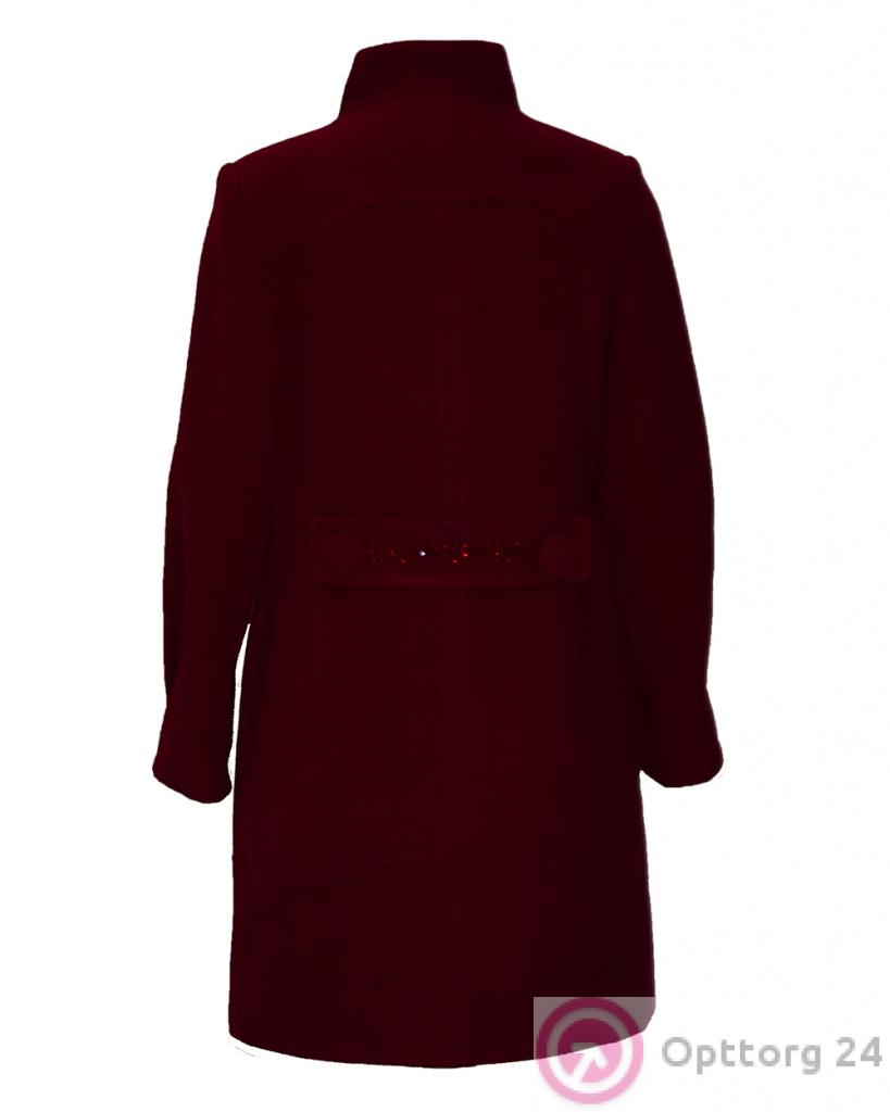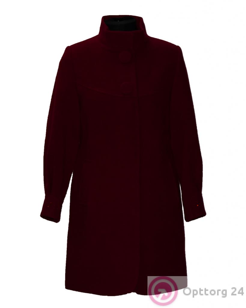 Пальто женское с двумя декоративными пуговицами бордовое оптом