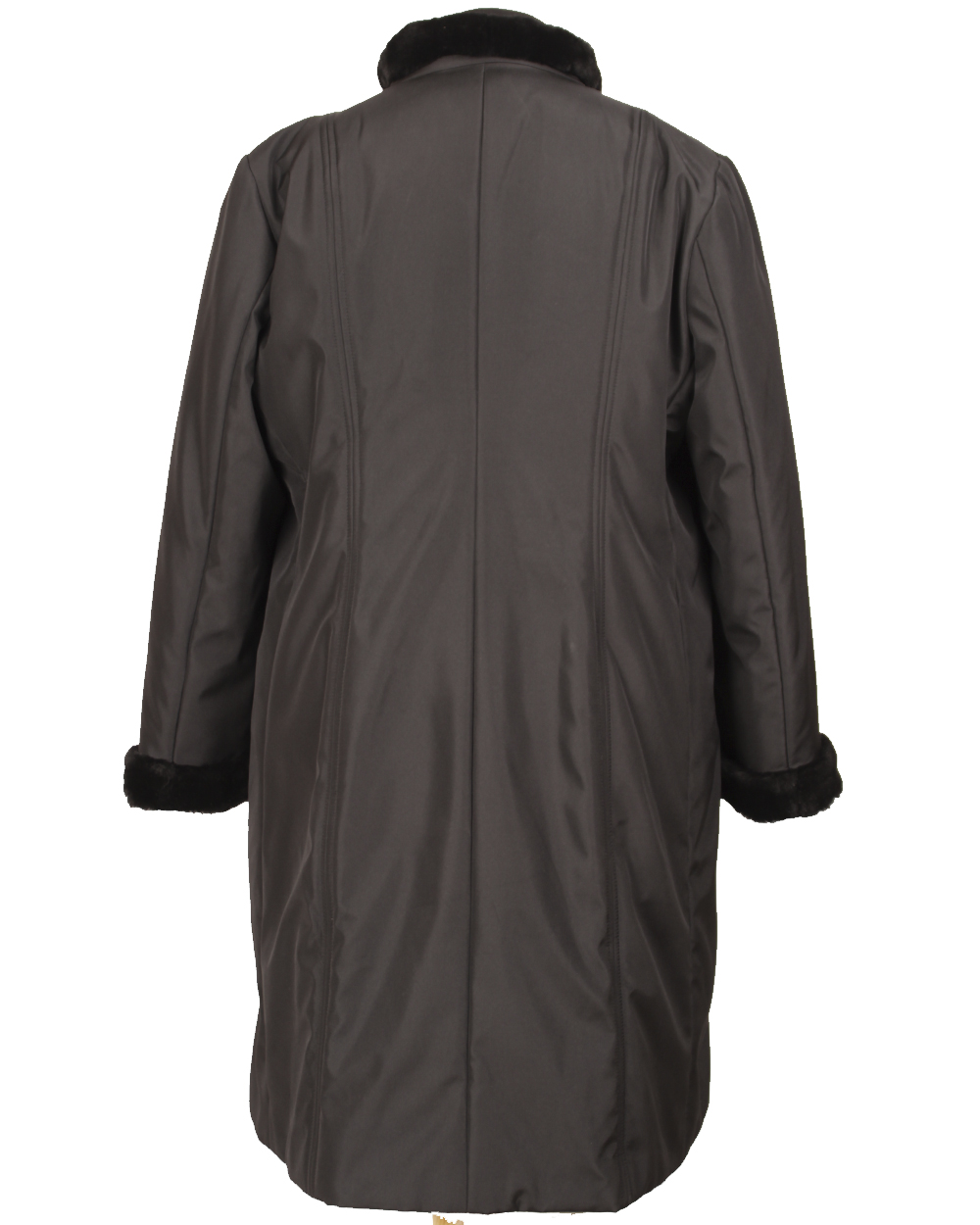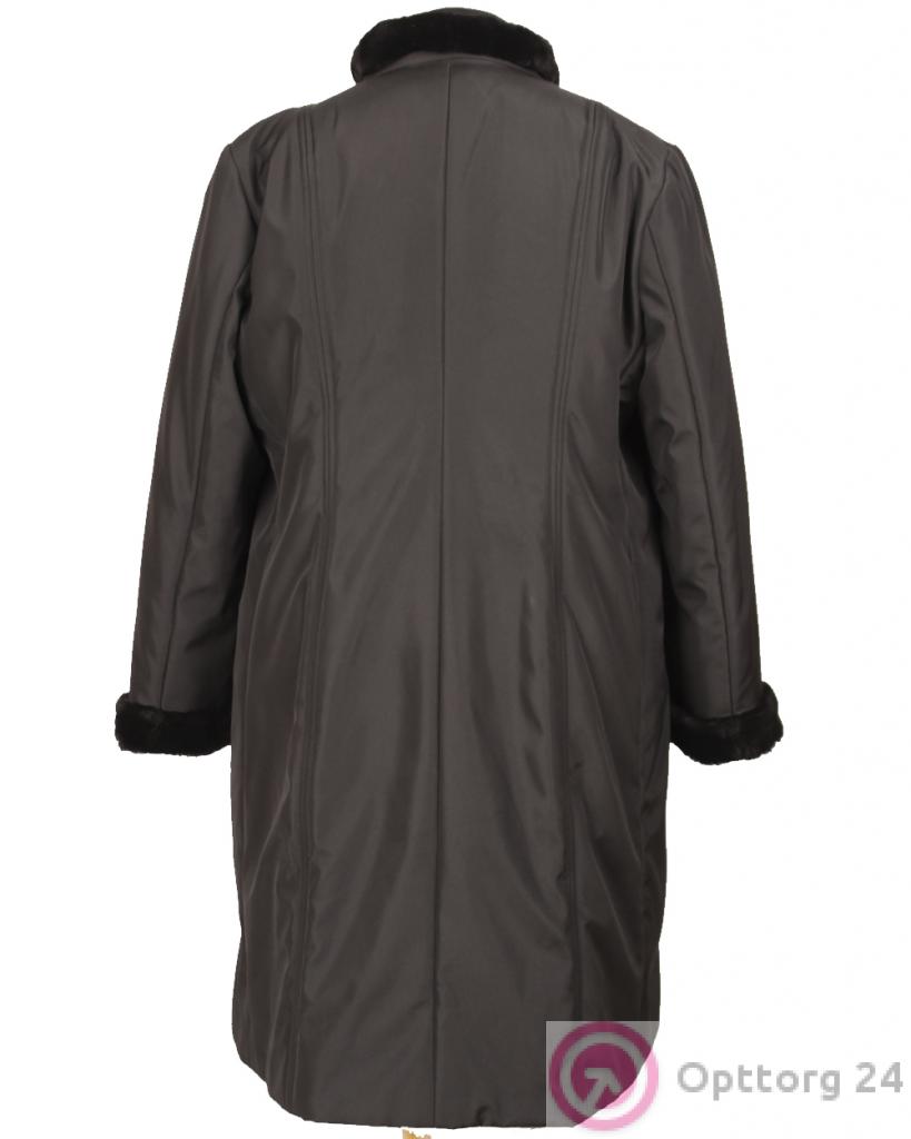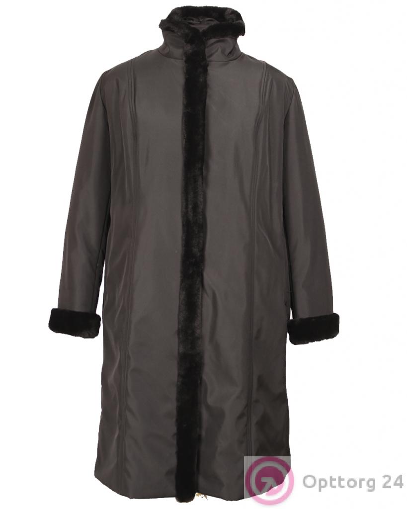 Пальто женское с искусственным мехом на застёжке и вороте оптом