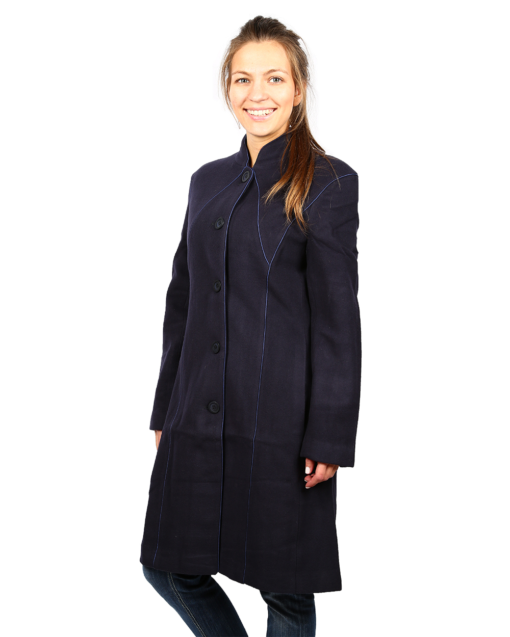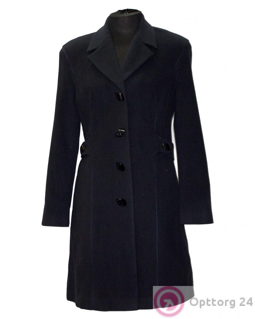 Пальто женское с оригинальным поясом отложной воротник цвет темно-синий купить оптом