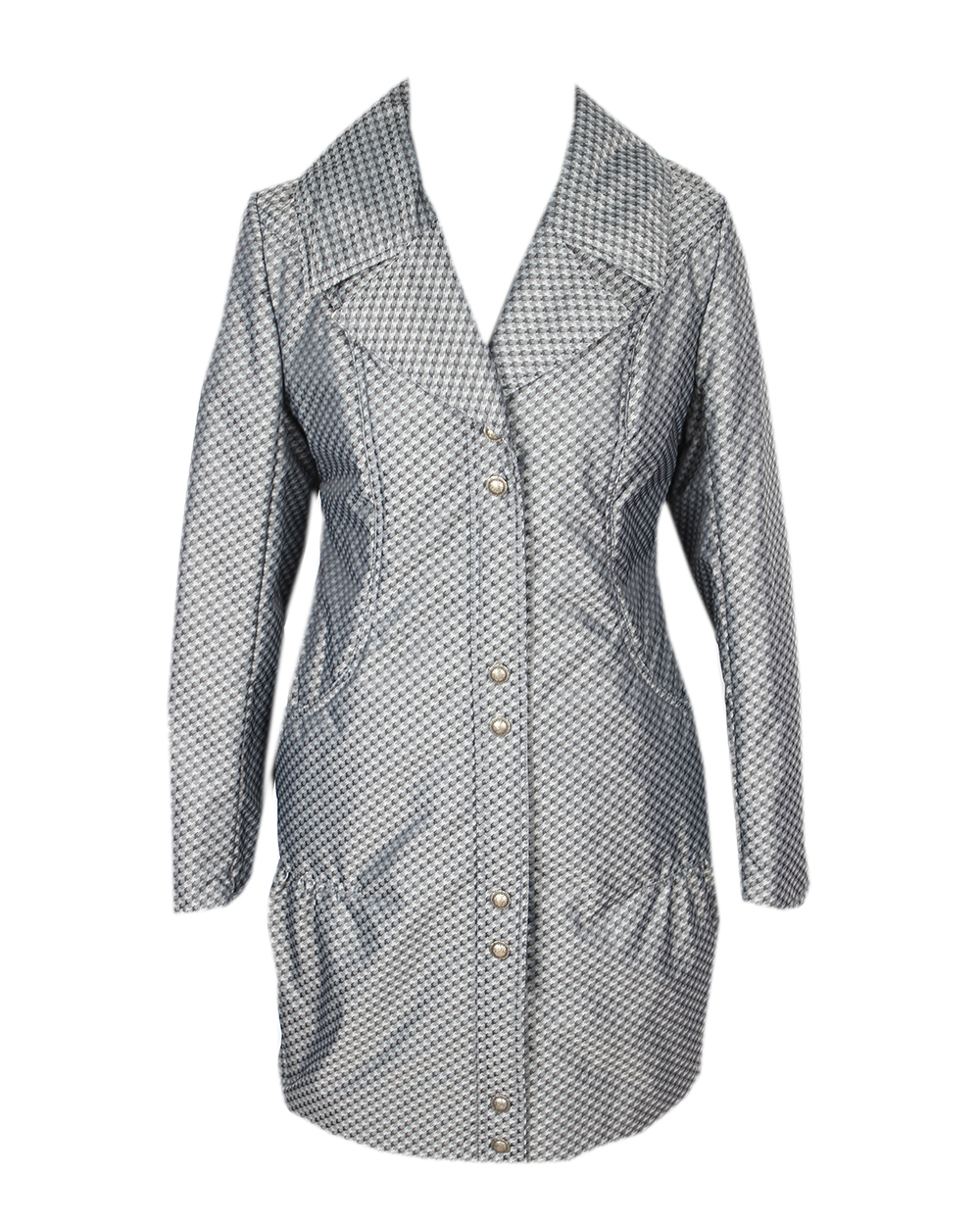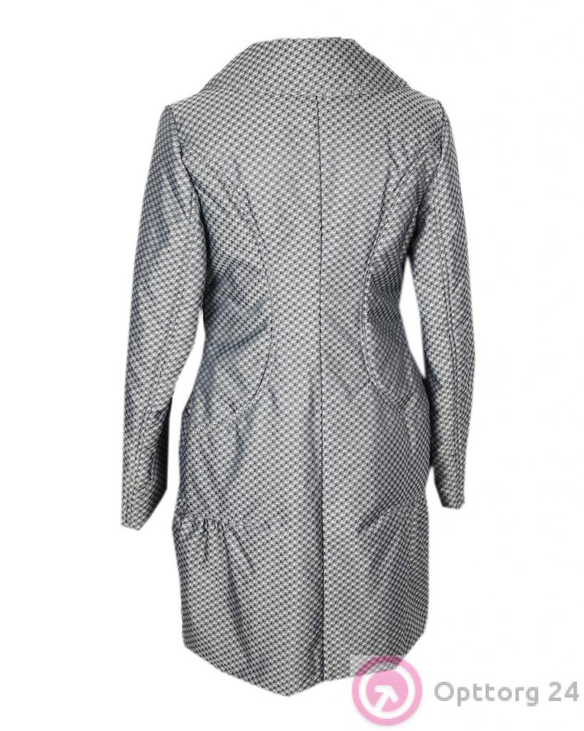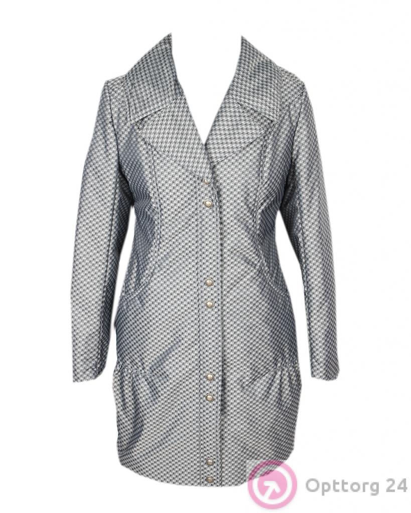 Стидльное денское пальто длиной до колена. Модель имеет приталенный крой.