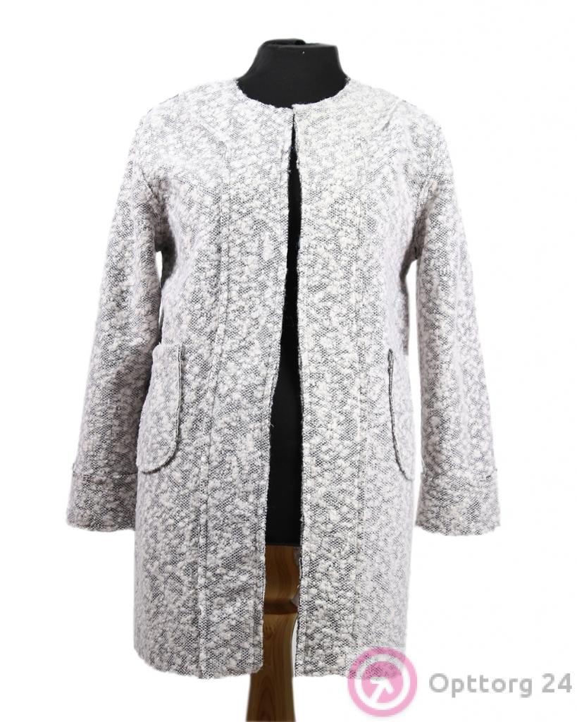 Пальто женское серое с драпировкой оптом