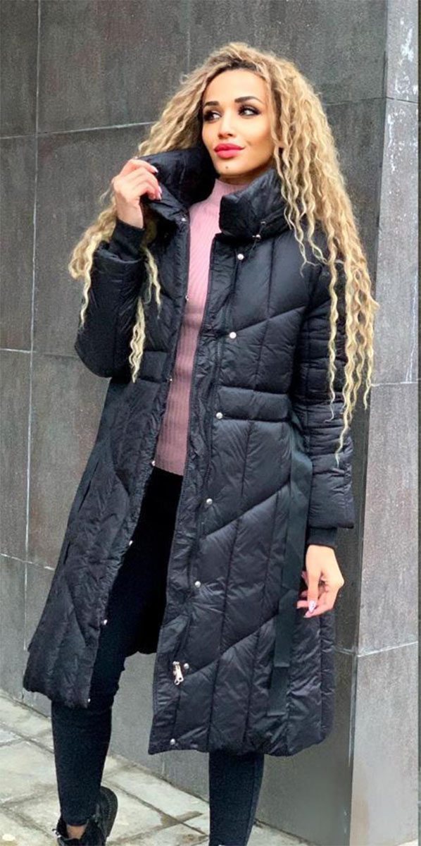 Описание: Пальто женское утепленное на синтепоне, черного цвета. Приталенное. Пальто декорировано лентой виде пояса. Застежка на молнии с ветрозащитной планкой на кнопках. Воротник стоечка. Два кармана.