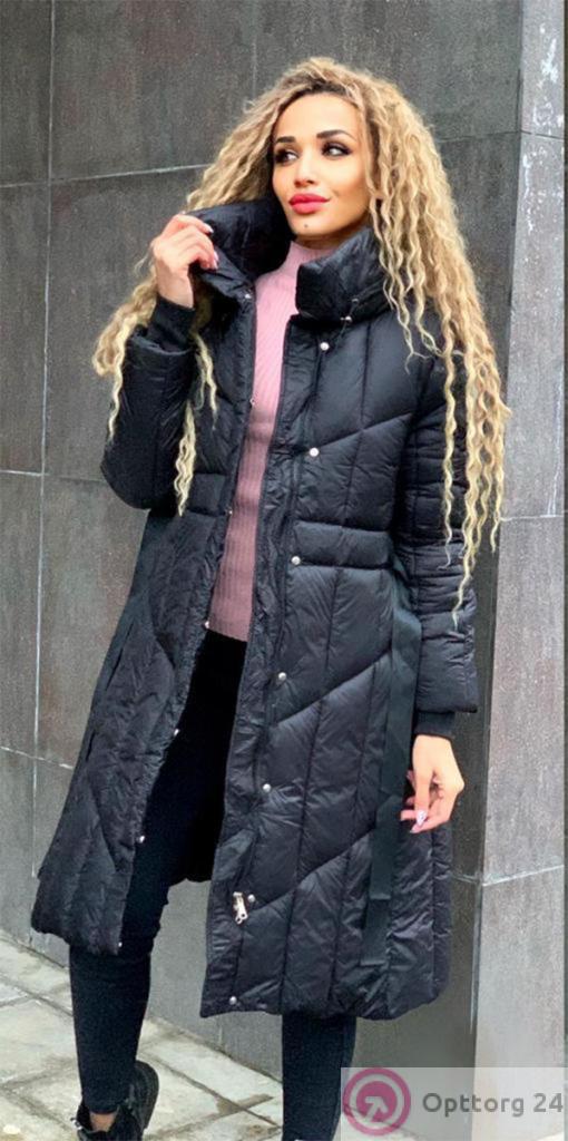 Пальто женское утепленное на синтепоне черного цвета оптом