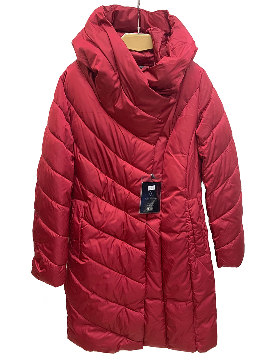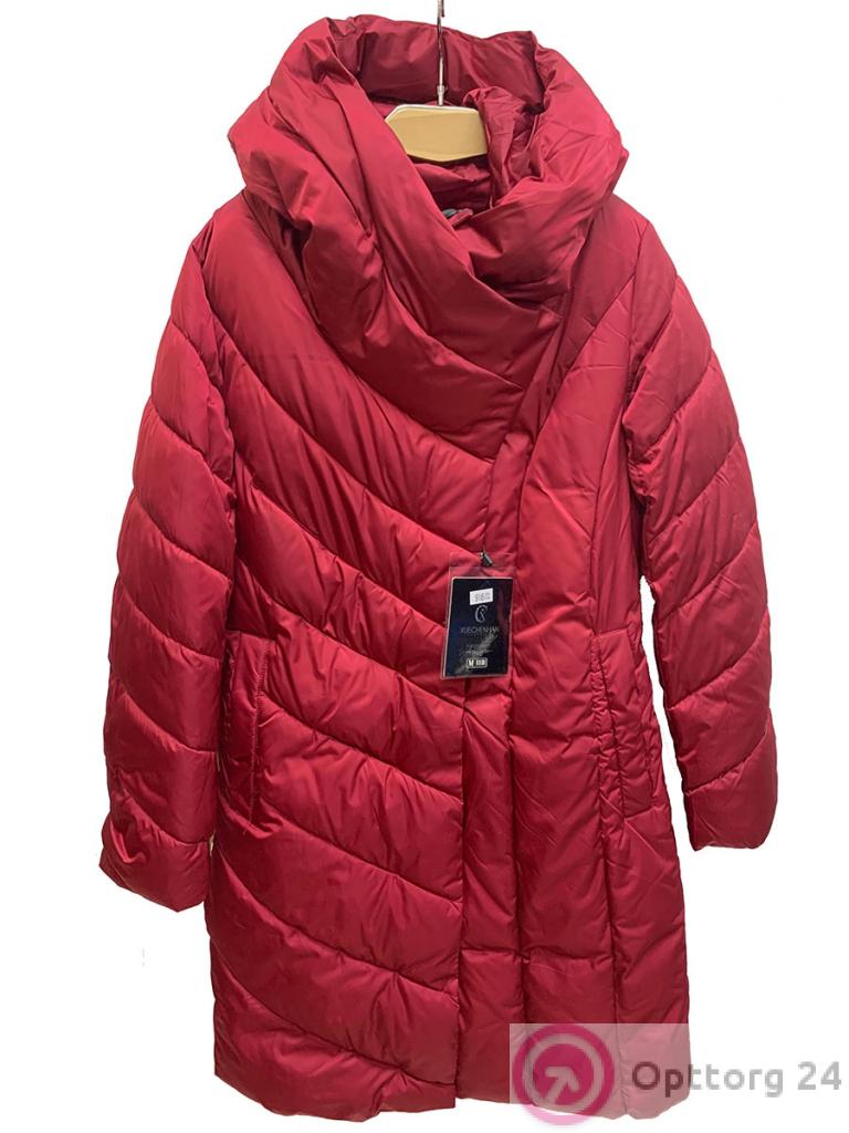 Пальто женское утепленное прямого кроя красного цвета оптом