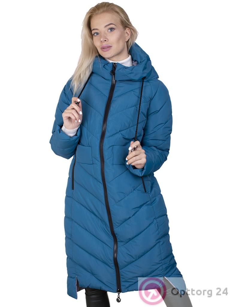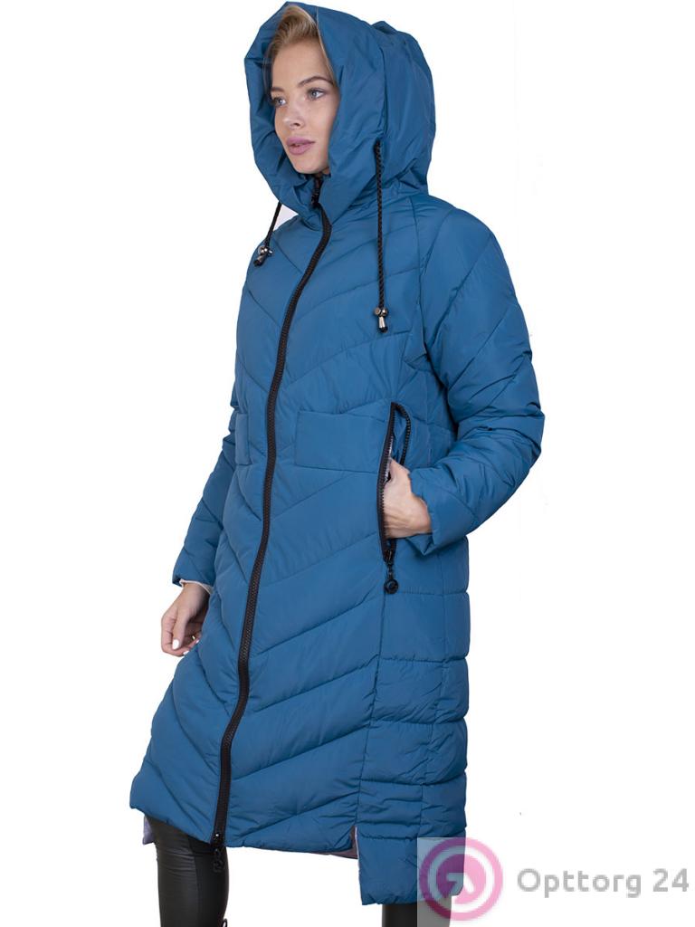 Пальто женское зимнее на синтепоне благородно синего цвета оптом