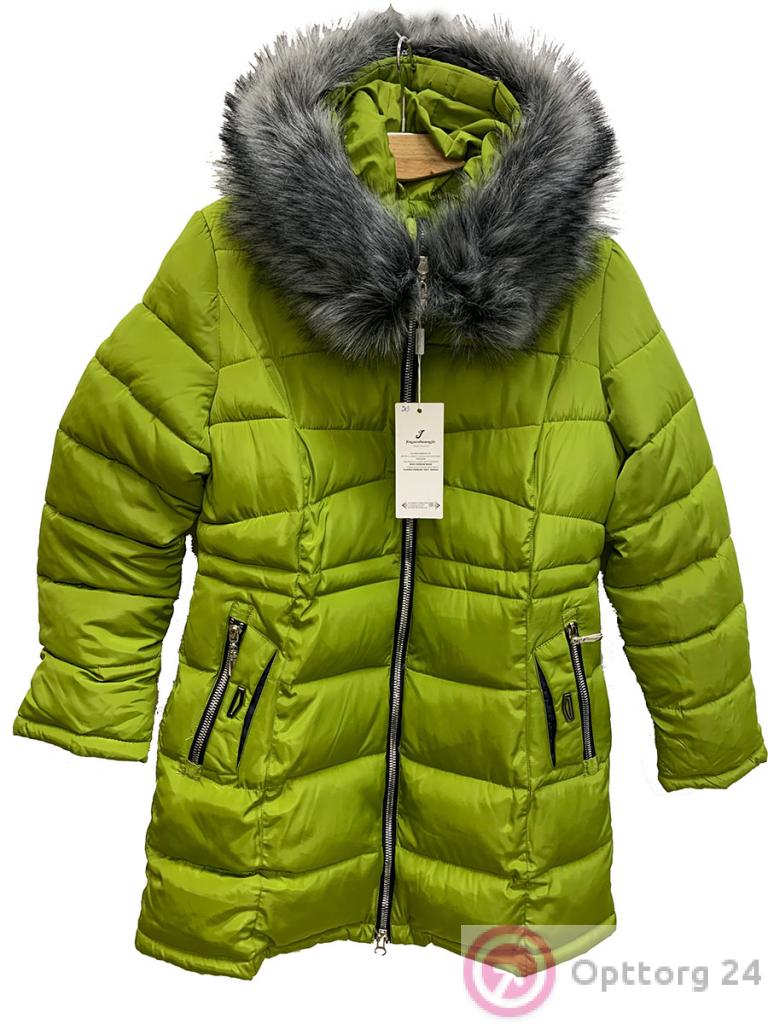Описание: Пальто женское зимнее на синтепоне стеганное зеленого цвета приталенное. На капюшоне искусственный мех. Застежка на молнии. Карманы на молнии.
