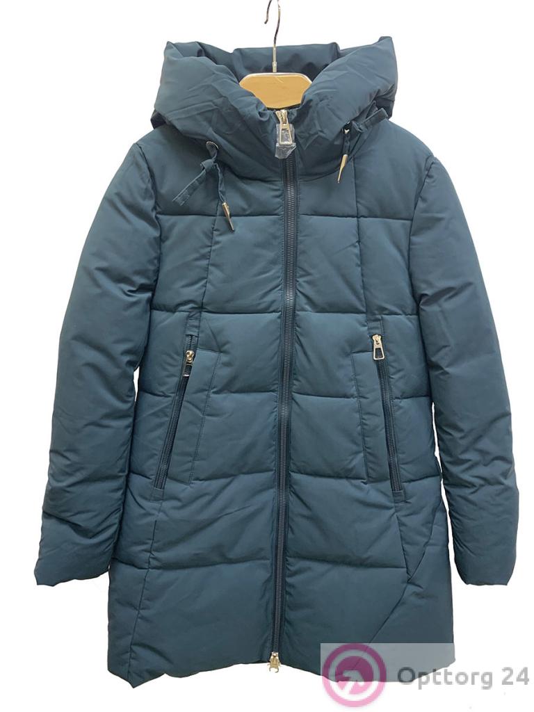 Пальто женское зимнее немного расклешенное цвет синий оптом