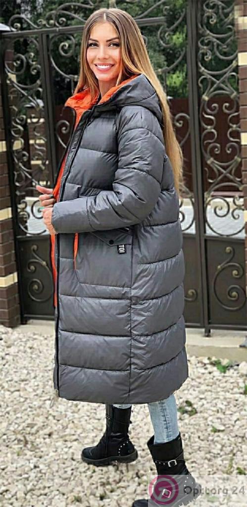 Пальто зимнее женское цвет мокрый асфальт оптом